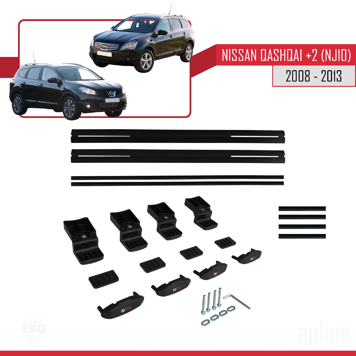 Compatibile con Nissan Qashqai +2 (NJ10) 2008-2013 BASIC Model Barre Tetto Portapacchi Auto Barre Portatutto Nero Alluminio 2 Barre