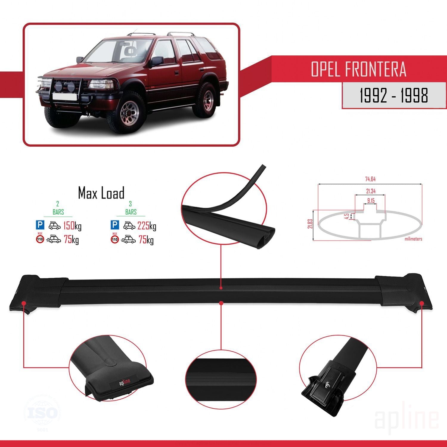 Compatibile con Opel Frontera 1992-1998 FLY Model Barre Tetto Portapacchi Auto Barre Portatutto Nero Alluminio 2 Barre