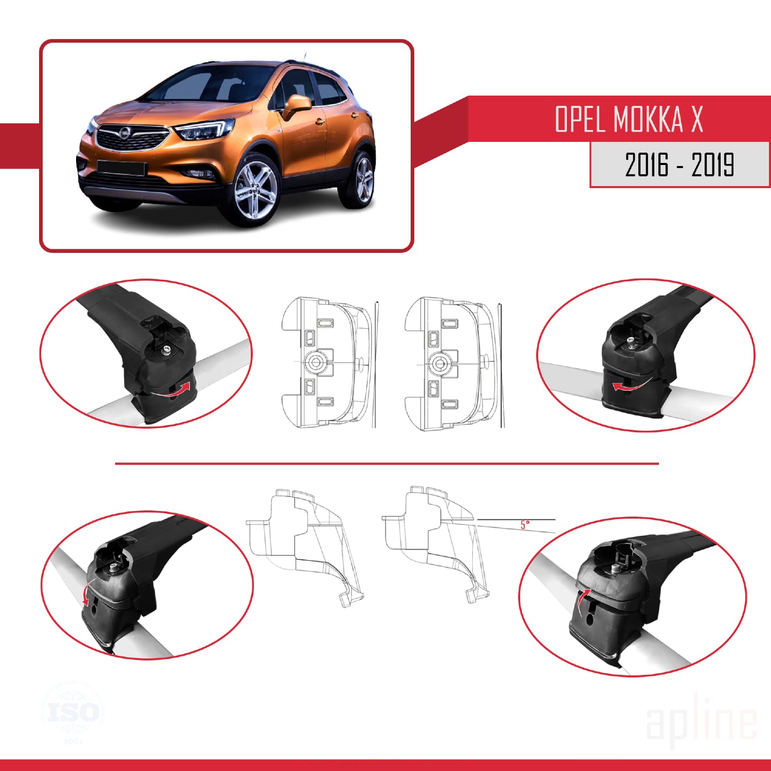 Compatibile con Opel Mokka X (J13) 2016-2019 ACE-2 Barre Tetto Portapacchi Auto Barre Portatutto Nero Alluminio 2 Barre
