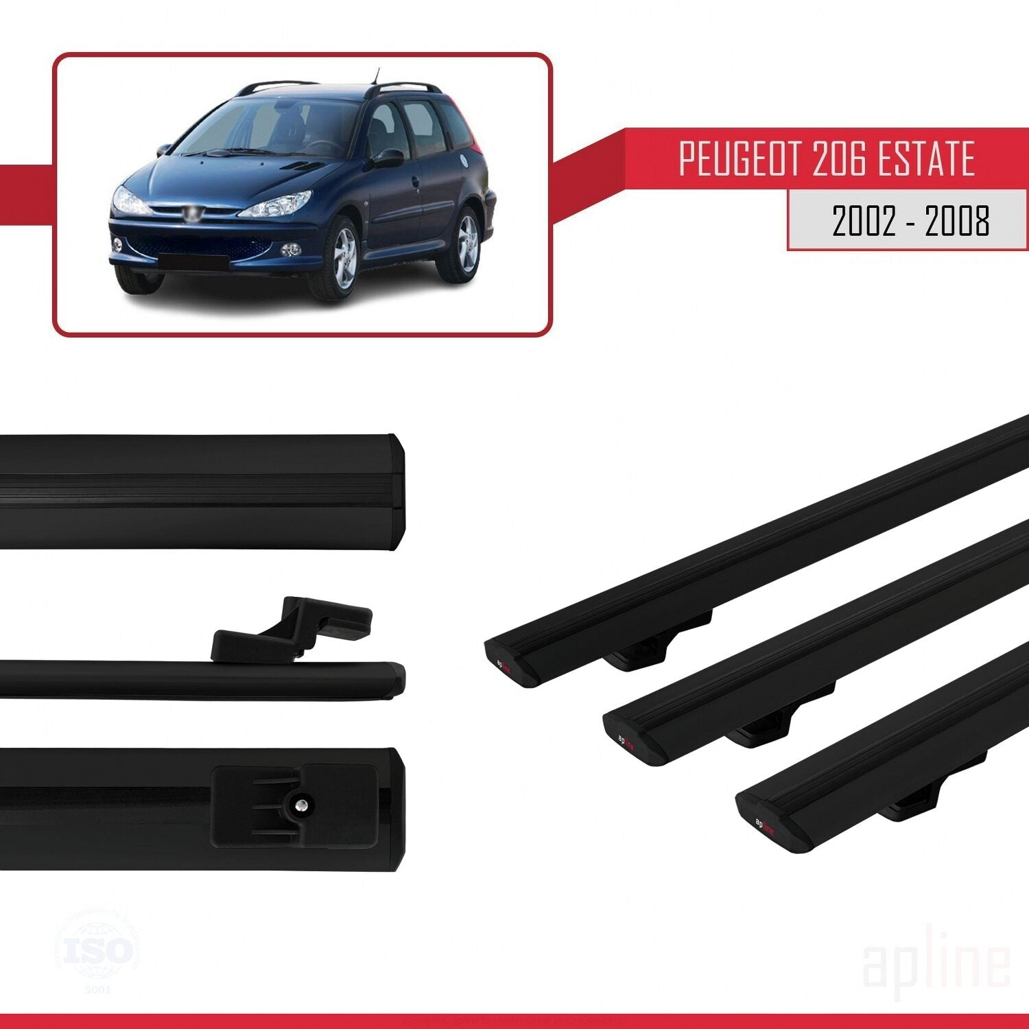 Compatibile con Peugeot 206 SW 2002-2008 BASIC Model Barre Tetto Portapacchi Auto Barre Portatutto Nero Alluminio 3 Barre