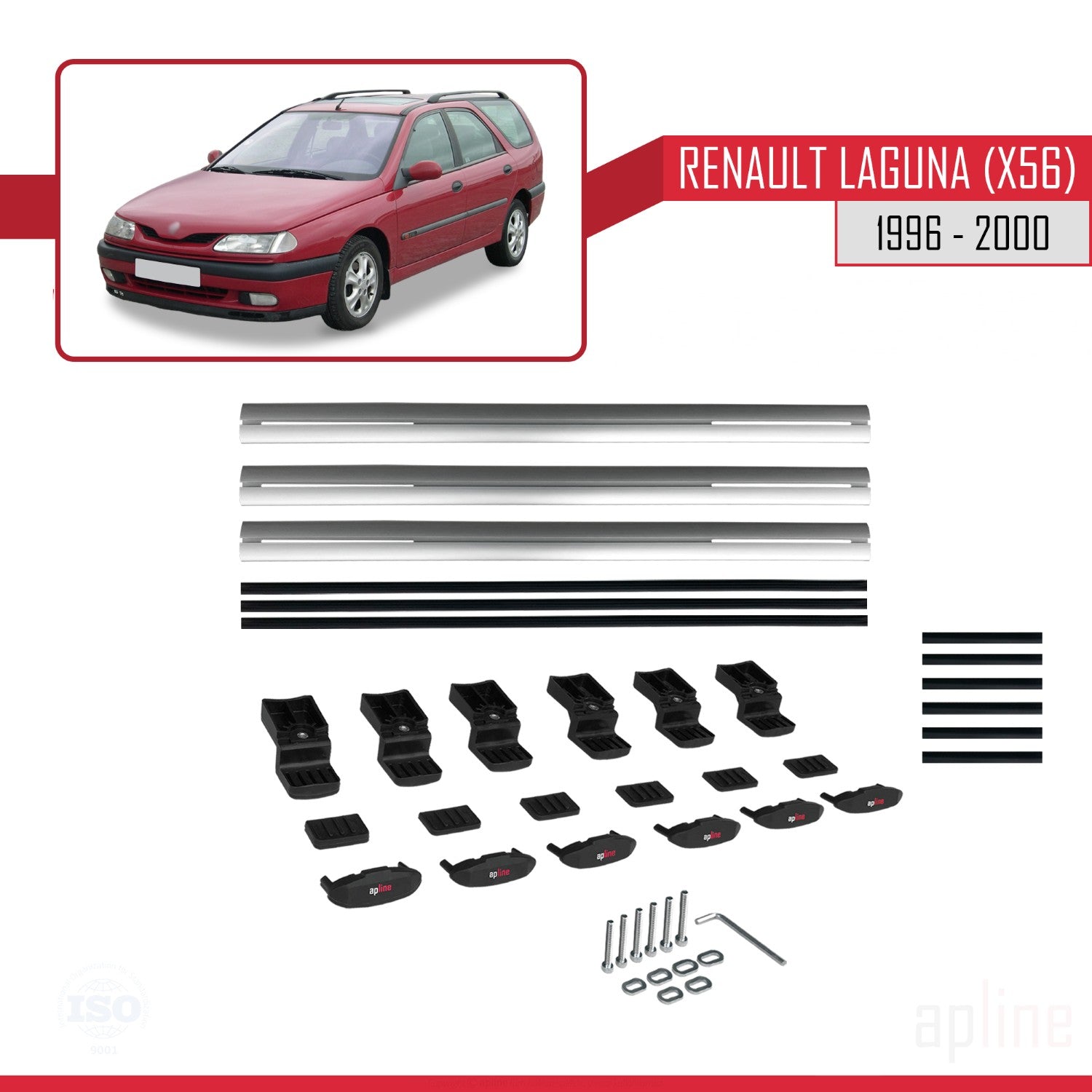 Compatibile con Renault Laguna (X56) 1996-200 BASIC Model Barre Tetto Portapacchi Auto Barre Portatutto Grigo Alluminio 3 Barre
