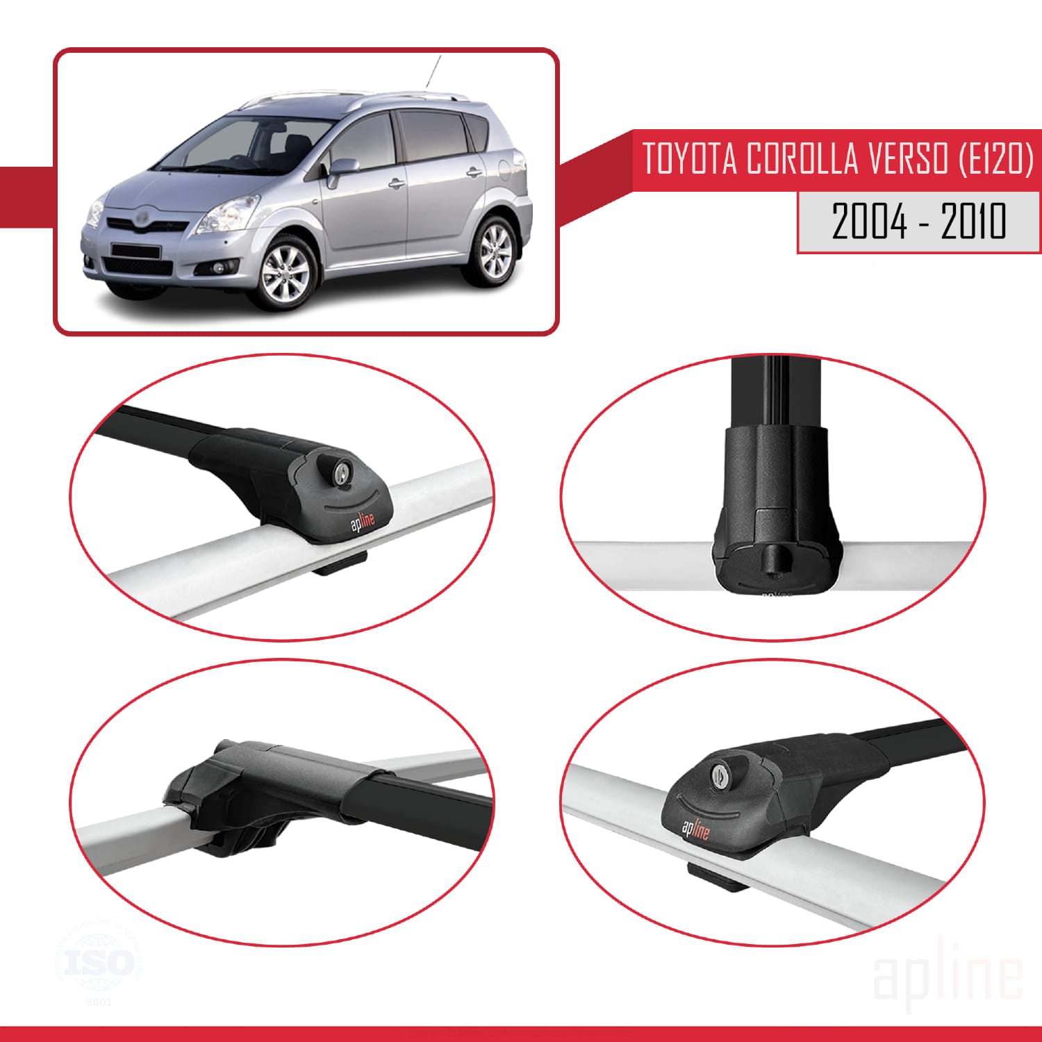 Compatibile con Toyota Corolla Verso 2 (AR10) 2004-2010 ACE-1 Barre Tetto Portapacchi Auto Barre Portatutto Nero Alluminio 3 Barre