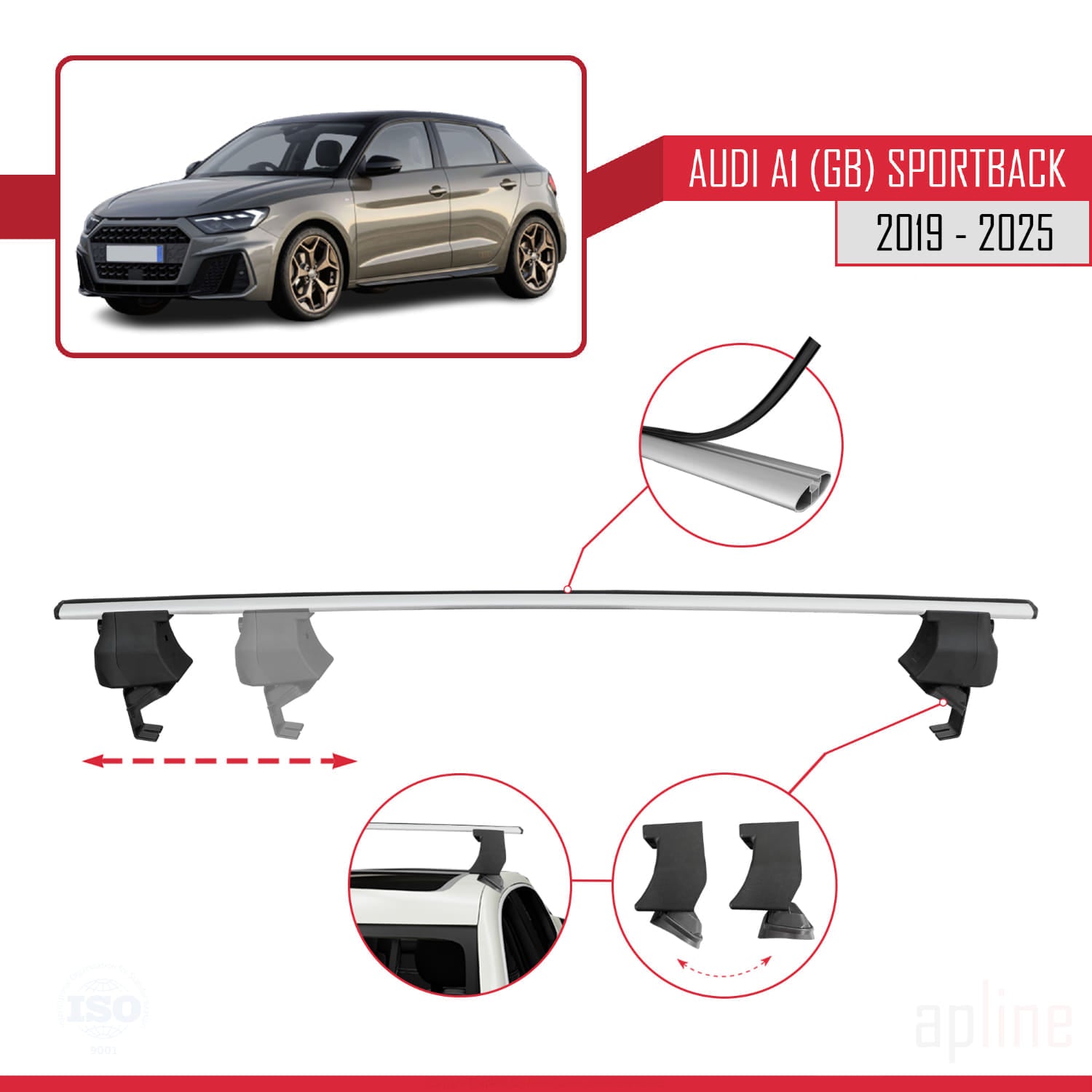 Compatible avec A1 (GB) Sportback 2019-2025 ACE-4 Barres de Toit Railing Porte-Bagages de Voiture Gris Aluminium 2 Barres