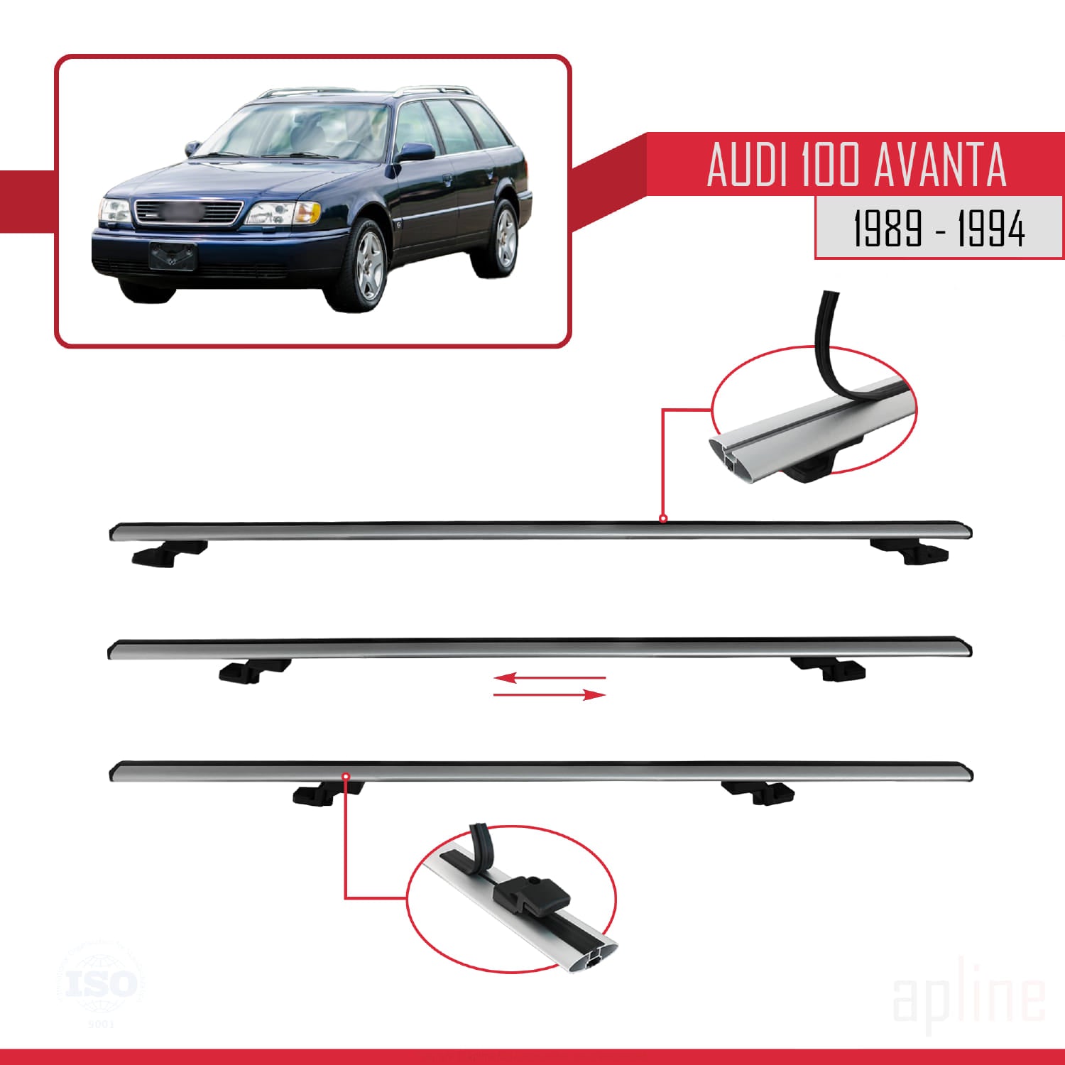 BASIC Model Dakdrager bagagedrager compatibel met Audi 100 Avanta 1989-1994 Spoorstaven Grijs Aluminium 2 Staven