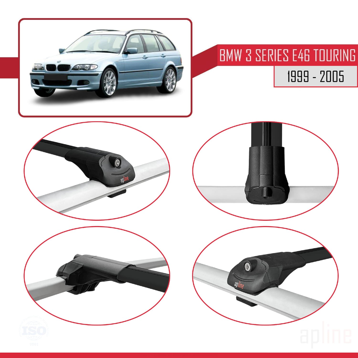 ACE-1 Dakdrager bagagedrager compatibel met BMW Serie 3 (E46) Touring 1999-2005 Spoorstaven Zwart Aluminium 3 Staven