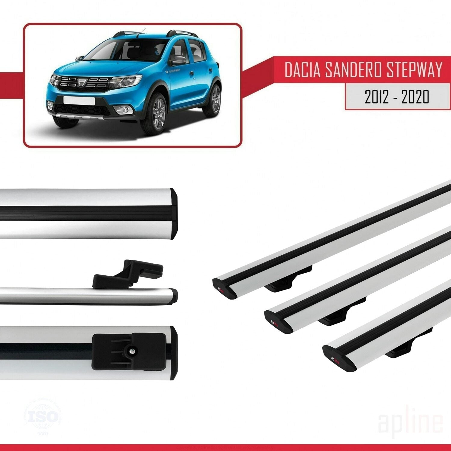 BASIC Model Dakdrager bagagedrager compatibel met Dacia Sandero Stepway 2 2012-2020 Spoorstaven Grijs Aluminium 3 Staven
