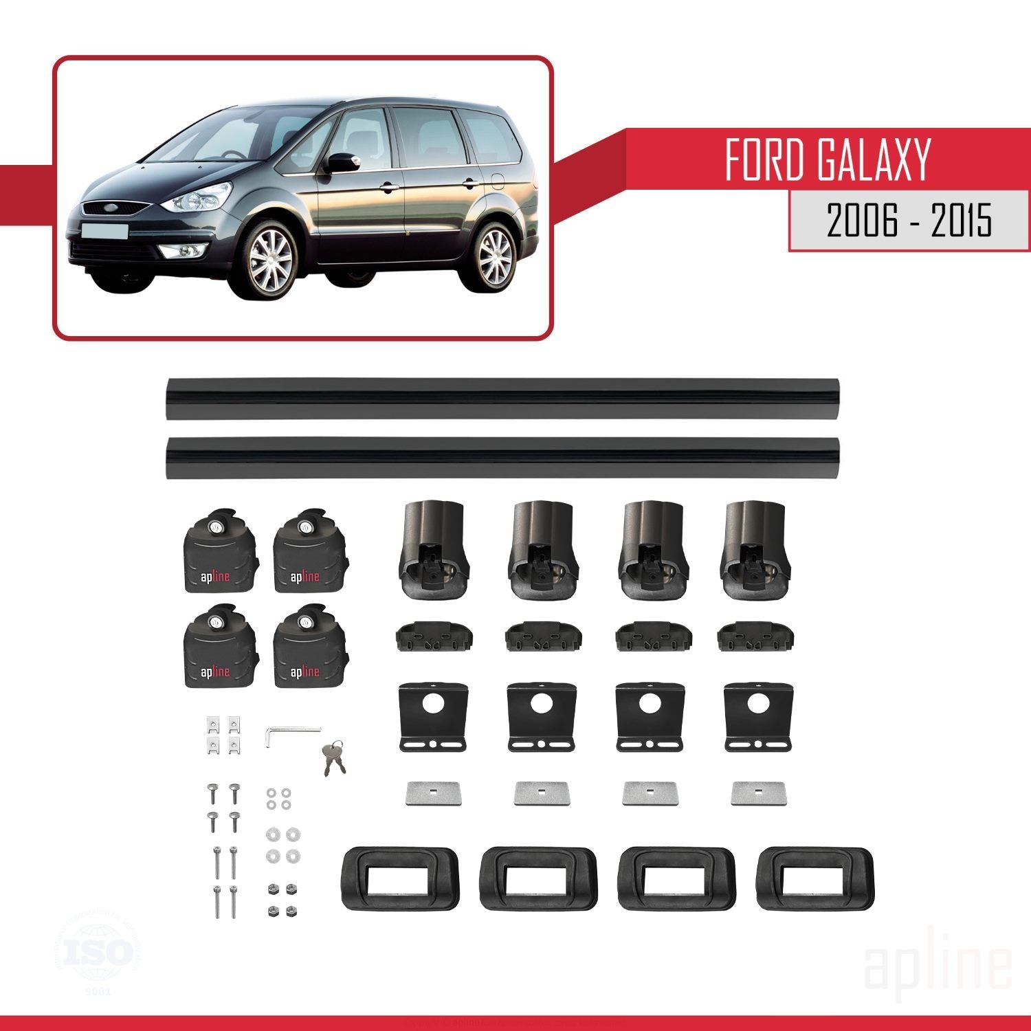 ACE-3 Dakdrager bagagedrager compatibel met Ford Galaxy (MK3) 2006-2015 Spoorstaven Zwart Aluminium 2 Staven
