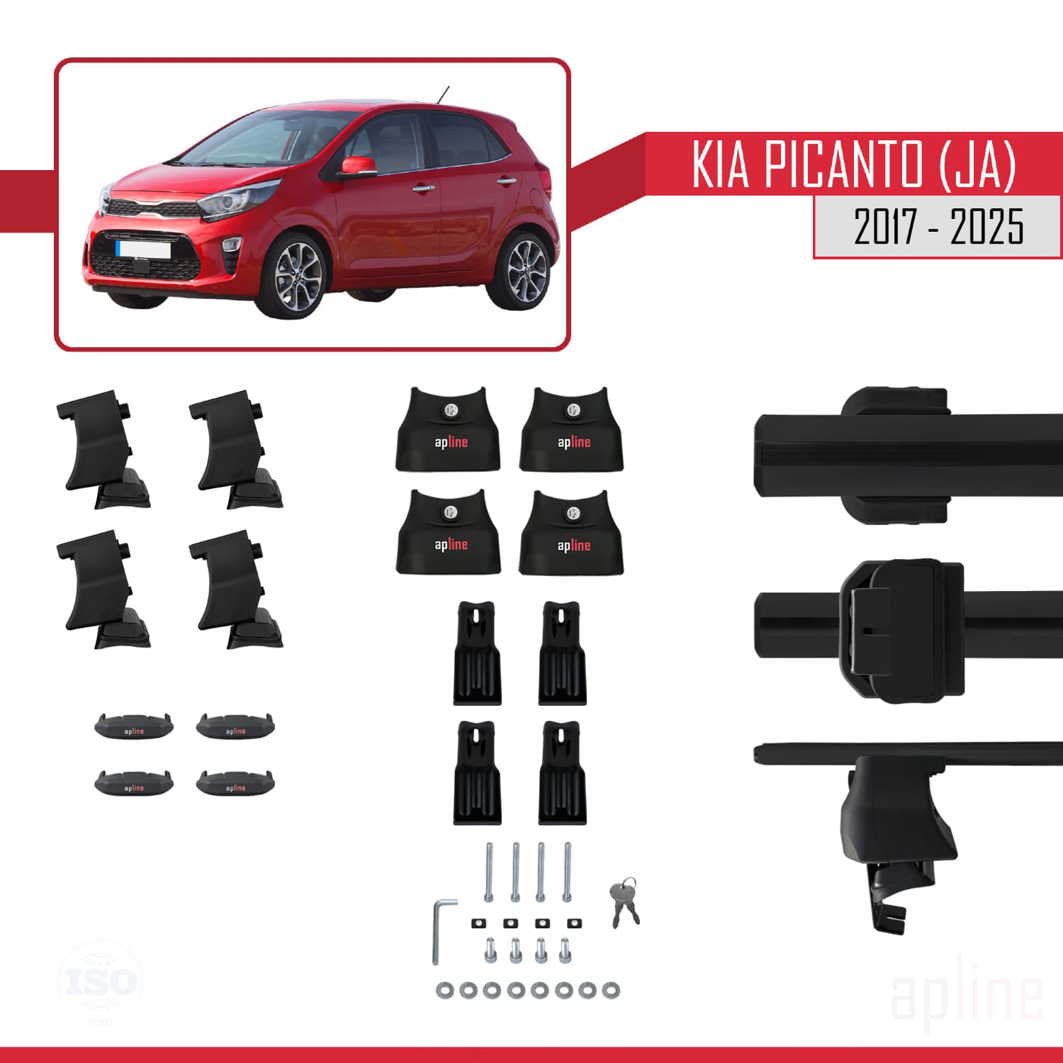 Compatible avec Kia Picanto 3 (JA) 2017-2025 ACE-4 Barres de Toit Railing Porte-Bagages de Voiture Noir Aluminium 2 Barres