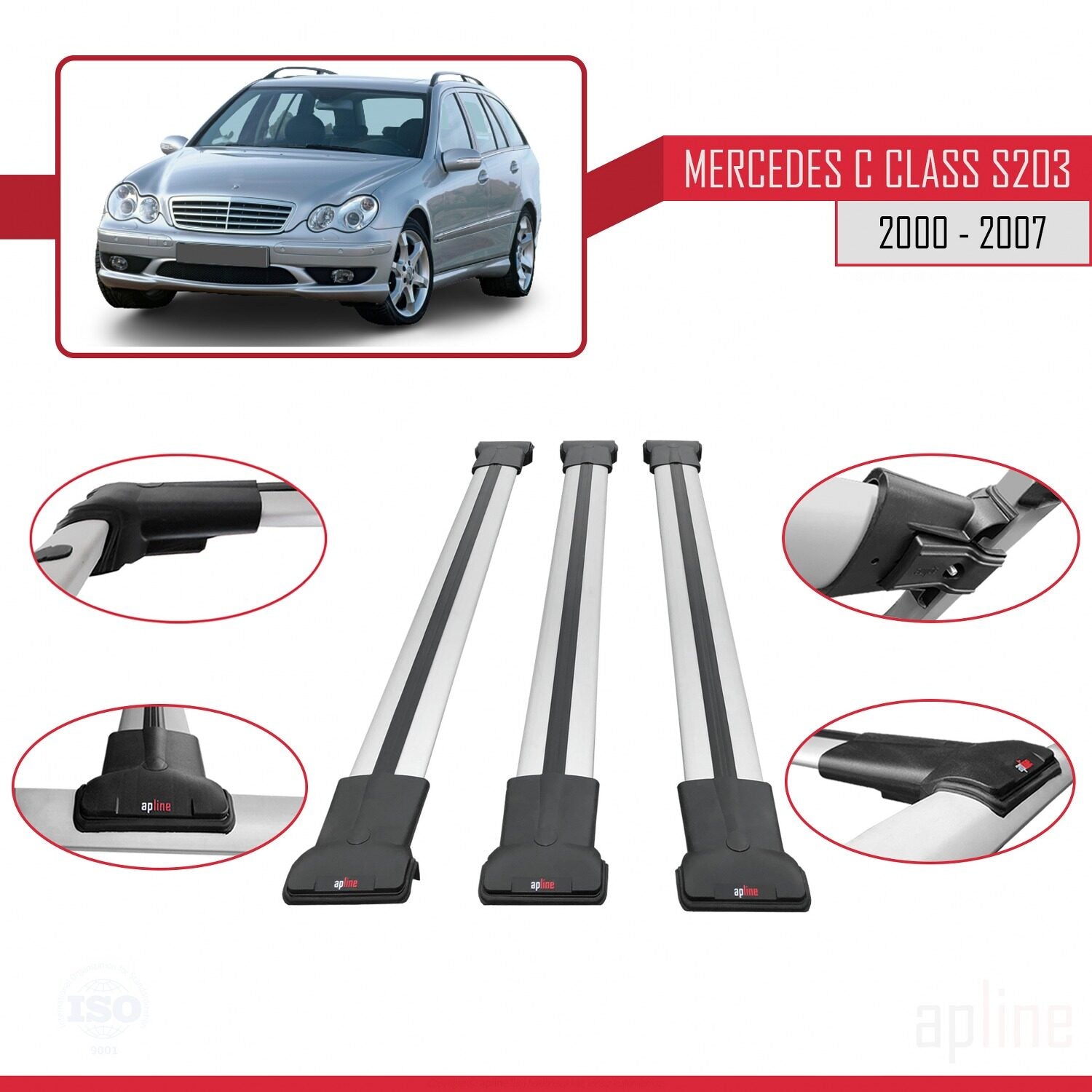 FLY Model Dakdrager bagagedrager compatibel met Mercedes C Klasse 2 (S203) 2000-2007 Spoorstaven Grijs Aluminium 3 Staven