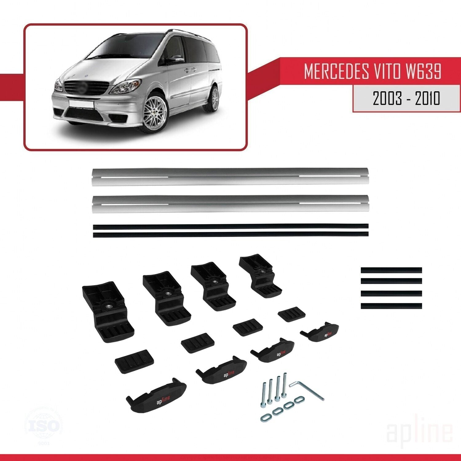 Compatible avec Mercedes Vito 2 (W639) Pre-Facelift 2003-2010 BASIC Model Barres de Toit Railing Porte-Bagages de Voiture Gris Aluminium 2 Barres