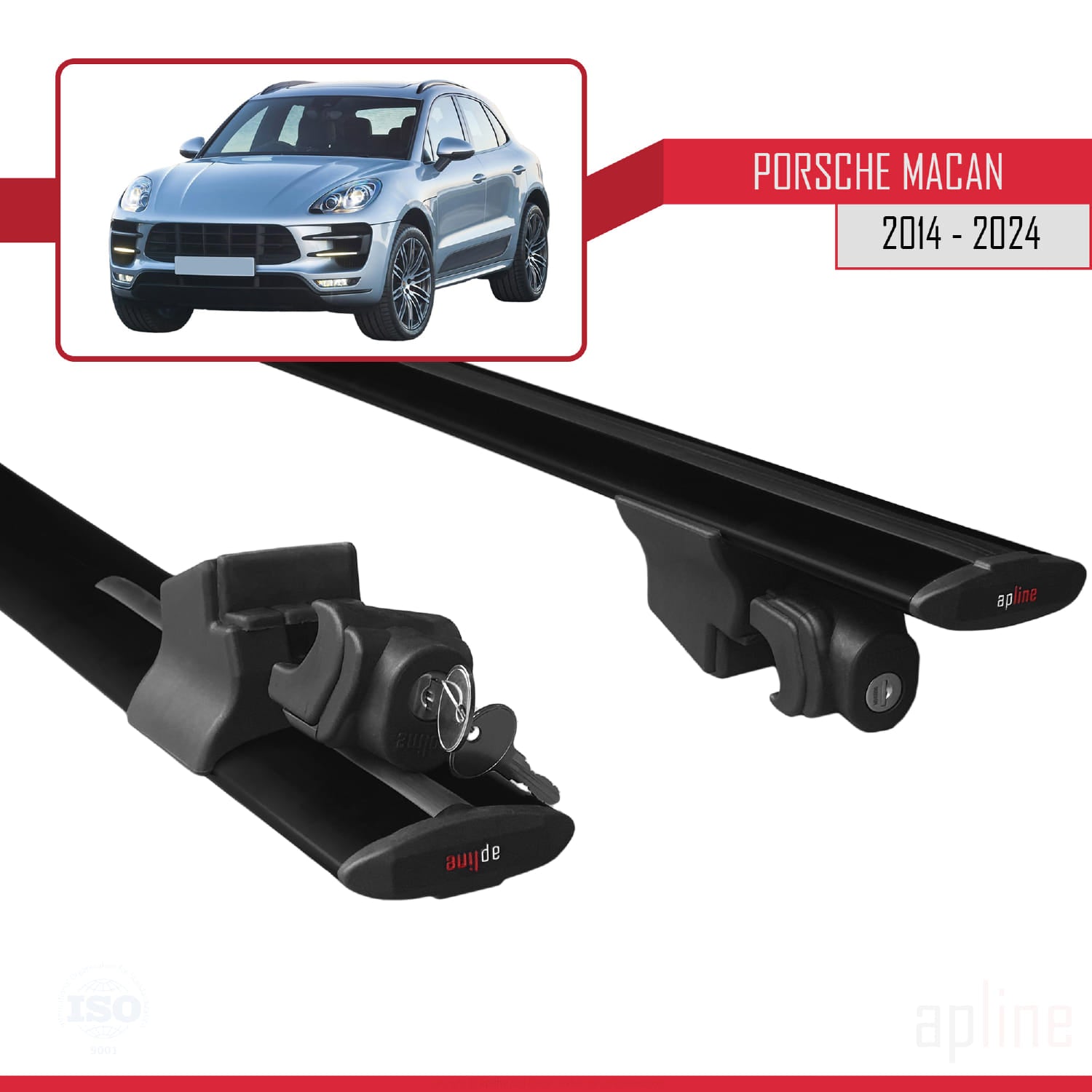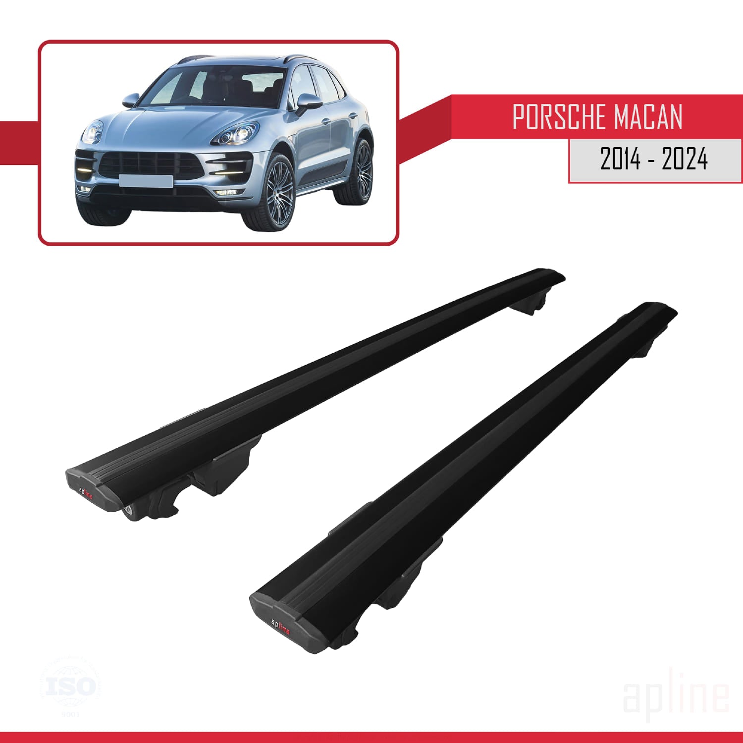 Compatible avec Porsche Macan (95B) 2014-2024 HOOK Model Barres de Toit Railing Porte-Bagages de Voiture Noir Aluminium 2 Barres