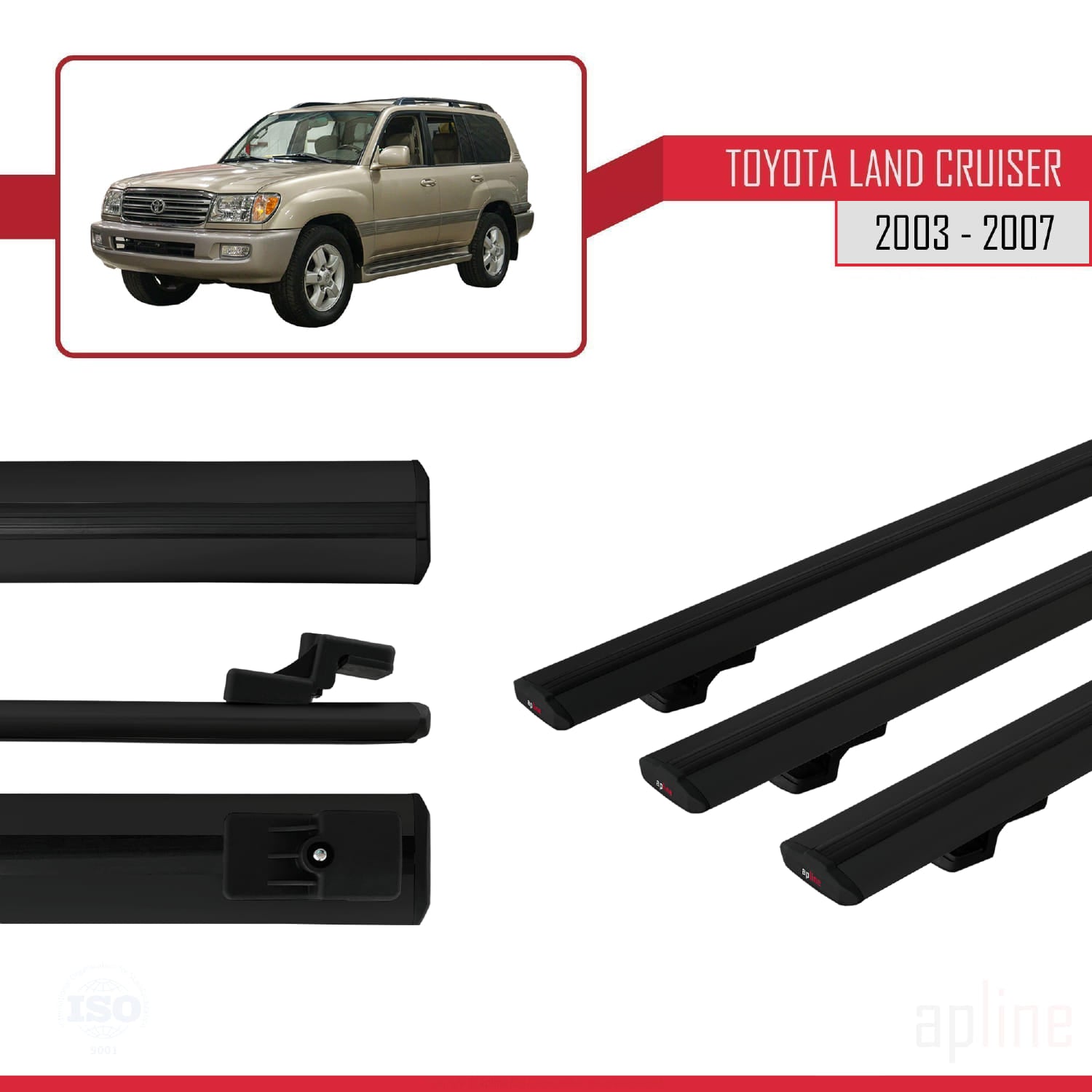 Compatible avec Toyota Land Cruiser (J100) 2003-2007 BASIC Model Barres de Toit Railing Porte-Bagages de Voiture Noir Aluminium 3 Barres
