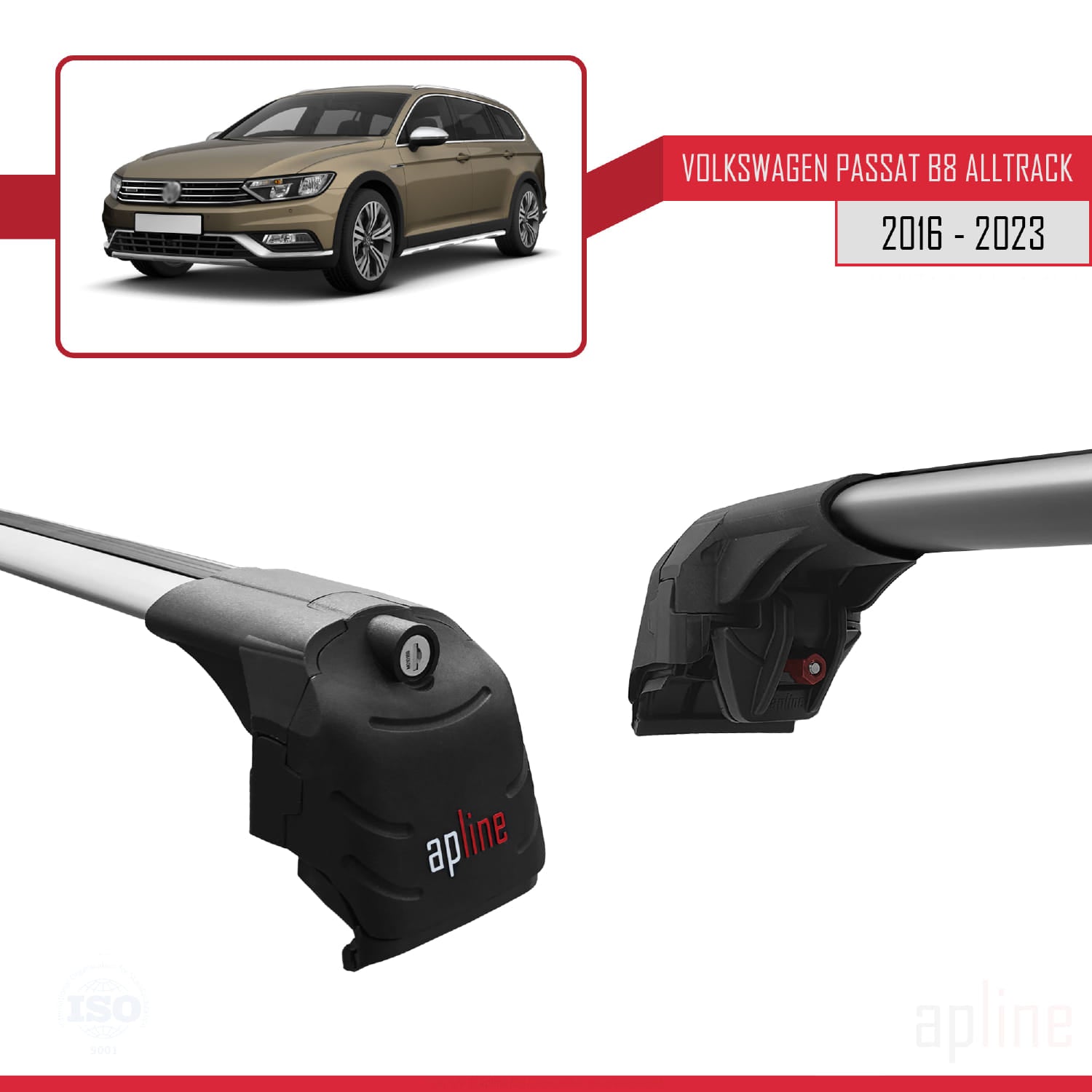 ACE-2 Dakdrager bagagedrager compatibel met Volkswagen Passat B8 (3G) Alltrack 2016-2023 Spoorstaven Grijs Aluminium 2 Staven