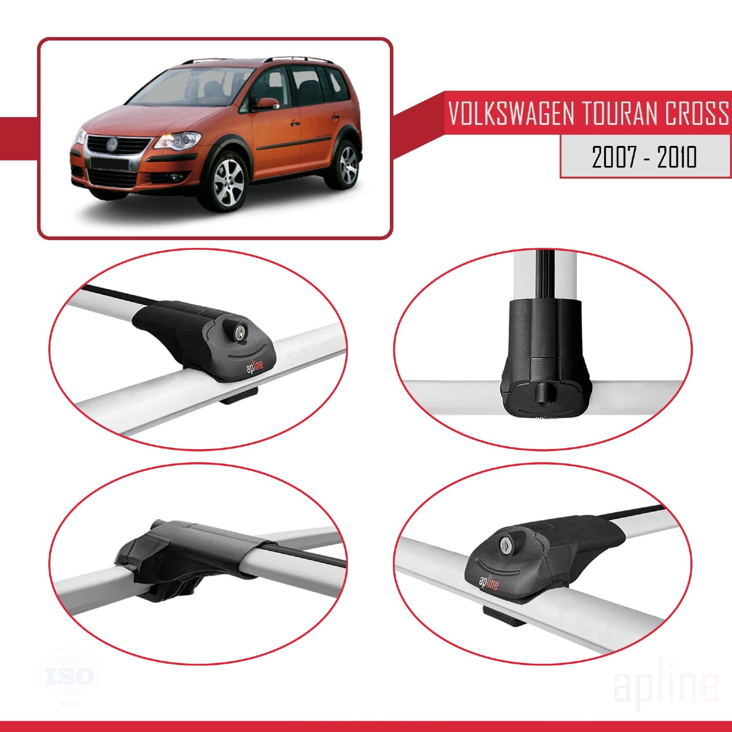 ACE-1 Dakdrager bagagedrager compatibel met Volkswagen Touran Cross Pre-Facelift 2007-2010 Spoorstaven Grijs Aluminium 3 Staven