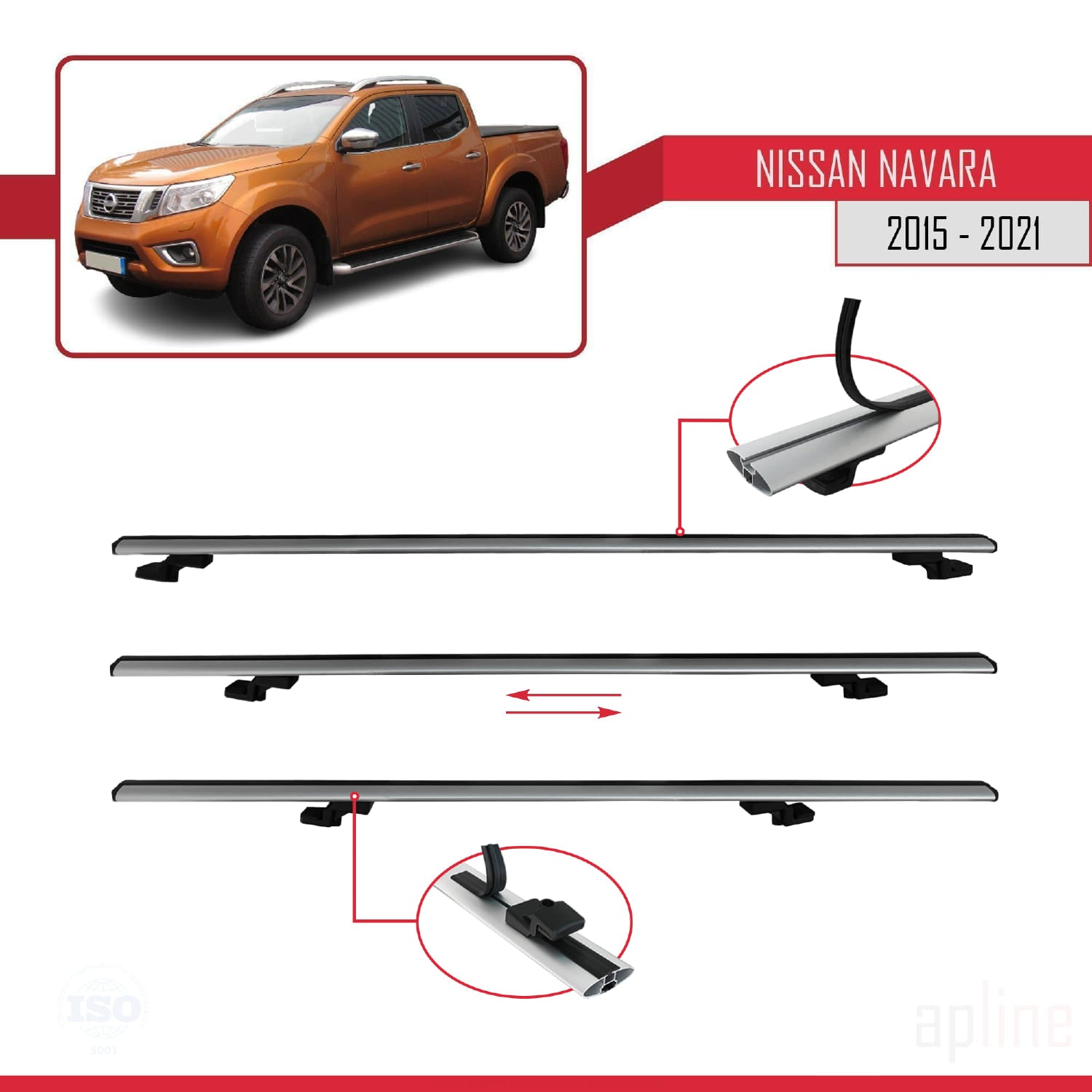 Compatible avec Nissan Navara 4 (D23) 2015-2021 BASIC Model Barres de Toit Railing Porte-Bagages de Voiture Gris Aluminium 2 Barres