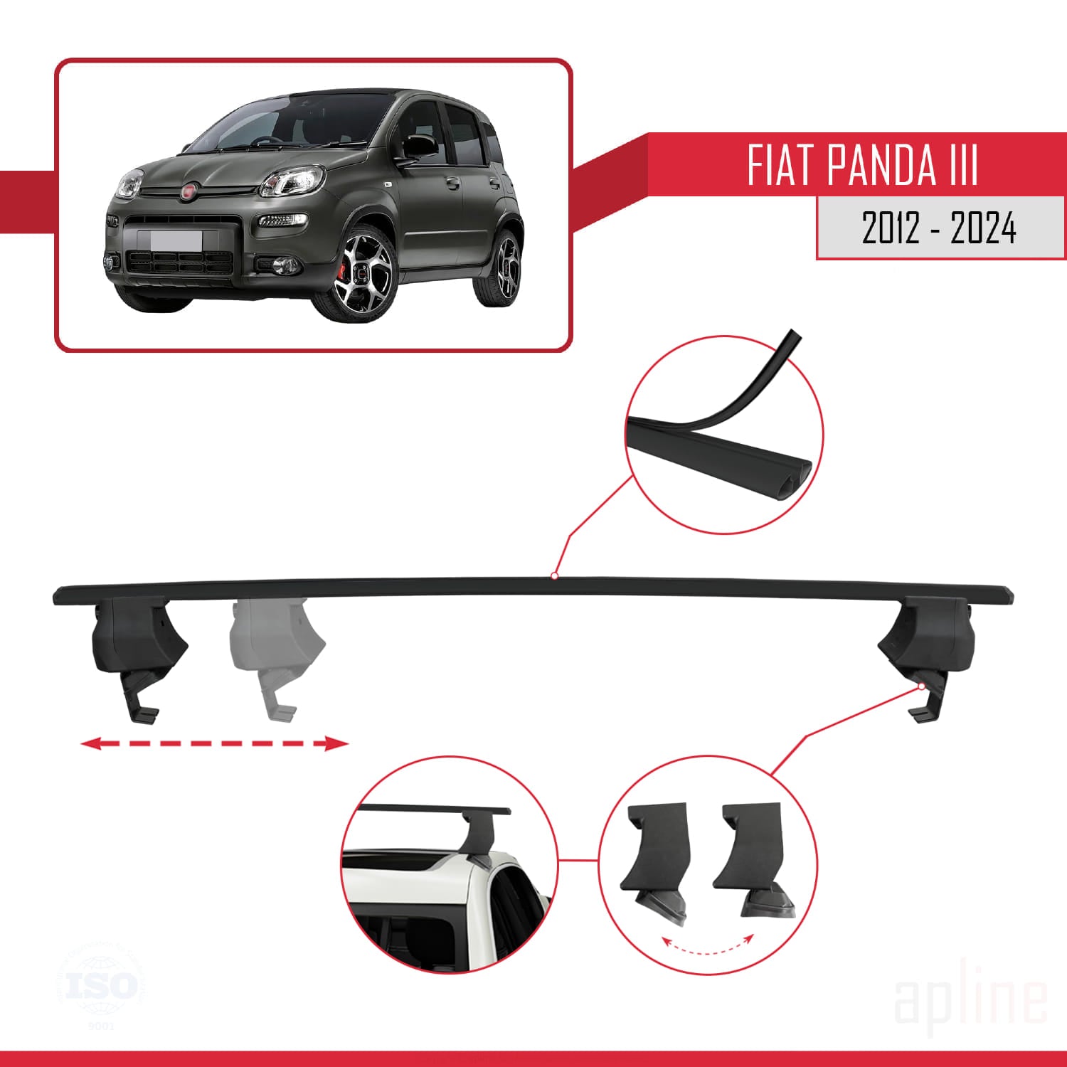 Compatible avec Fiat Panda 3 (319) 2012-2024 ACE-4 Barres de Toit Railing Porte-Bagages de Voiture Noir Aluminium 2 Barres