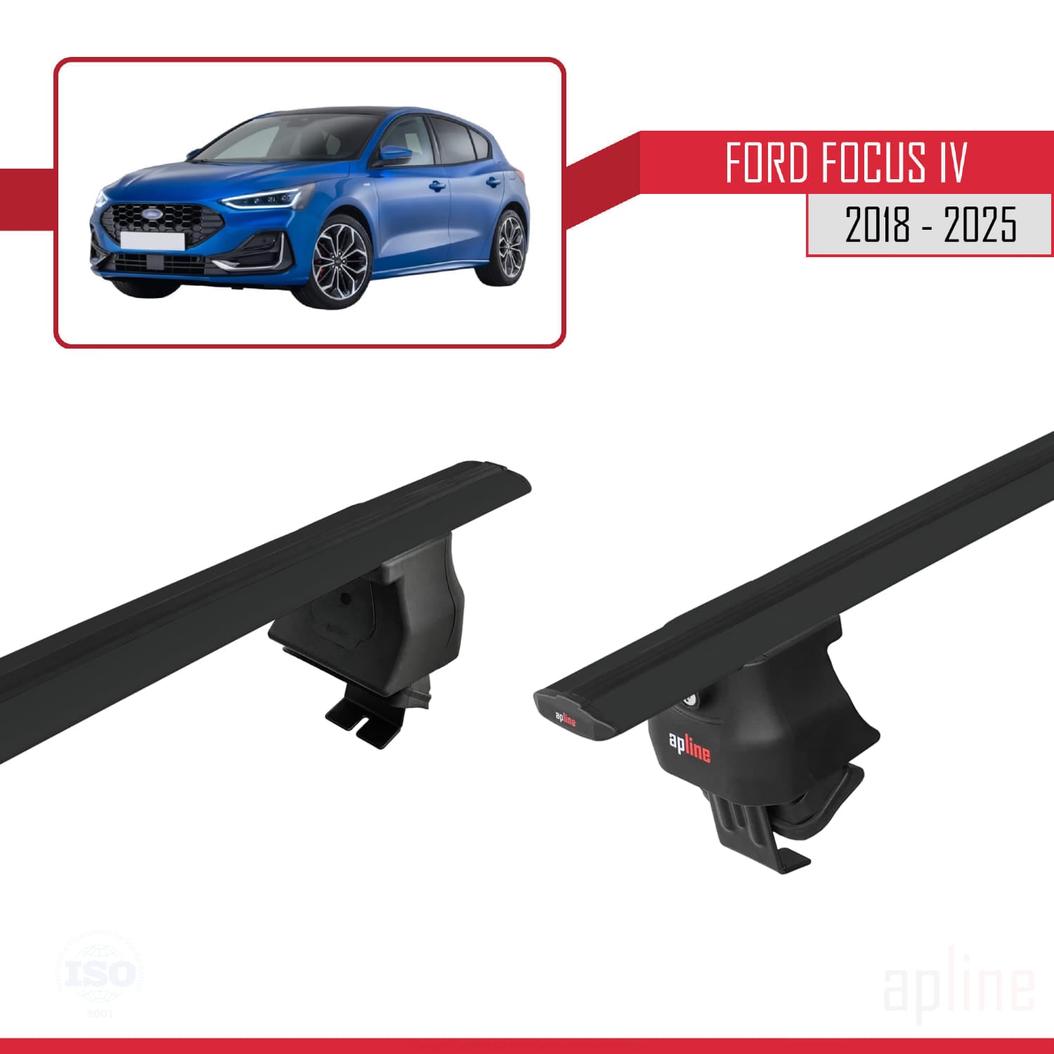 Compatible avec Ford Focus 4 (C519) 2018-2025 ACE-4 Barres de Toit Railing Porte-Bagages de Voiture Noir Aluminium 2 Barres