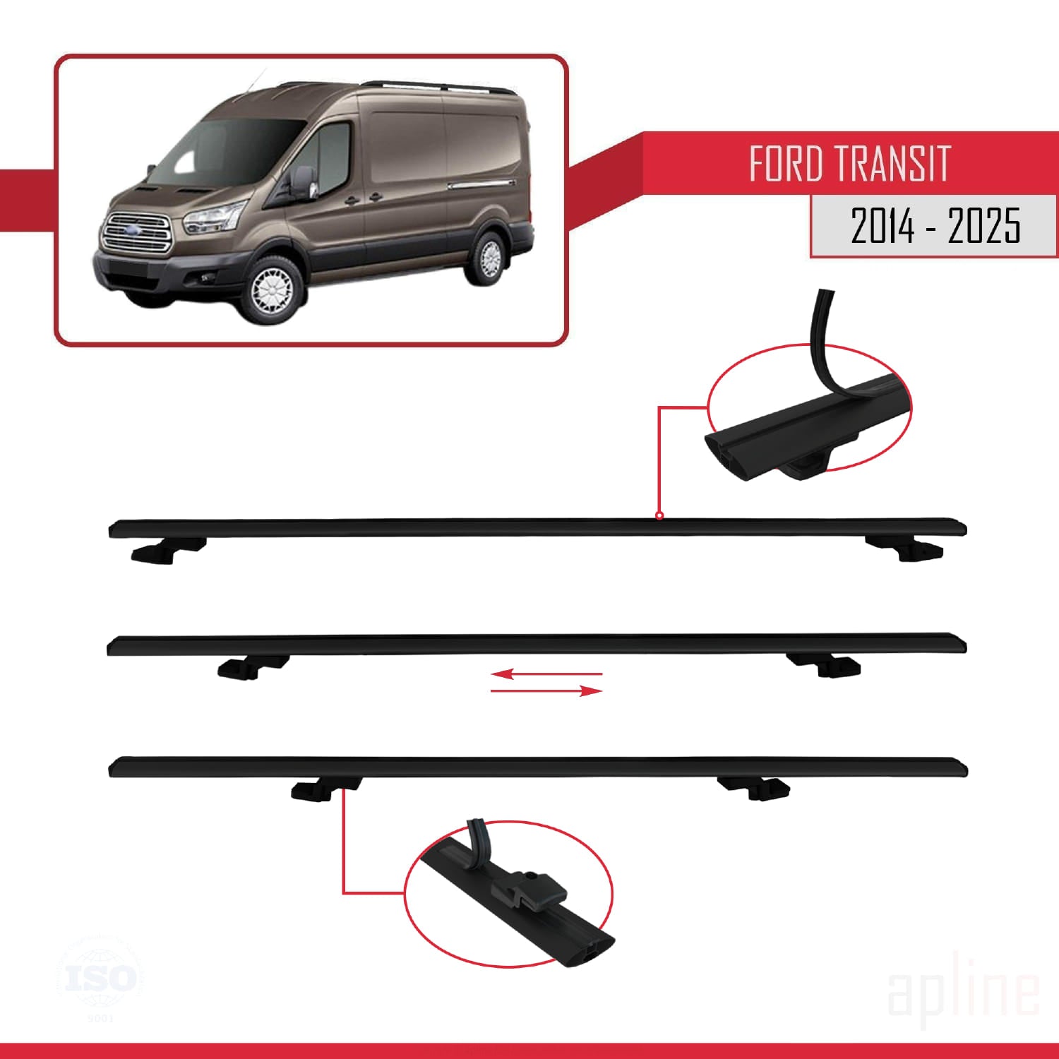 Compatible avec Ford Transit 2014-2025 BASIC Model Barres de Toit Railing Porte-Bagages de Voiture Noir Aluminium 3 Barres