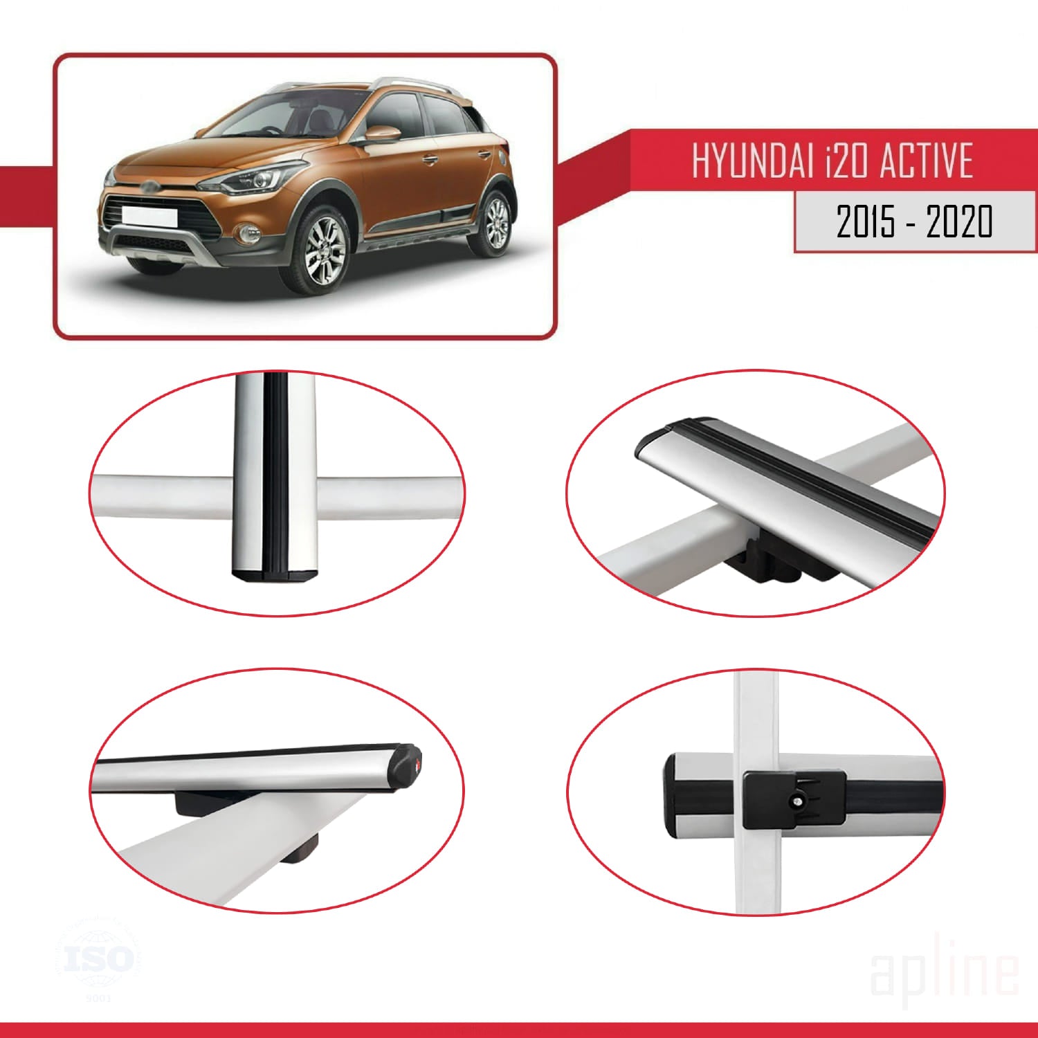 Compatible avec Hyundai i20 II Active 2015-2019 BASIC Model Barres de Toit Railing Porte-Bagages de Voiture Gris Aluminium 3 Barres