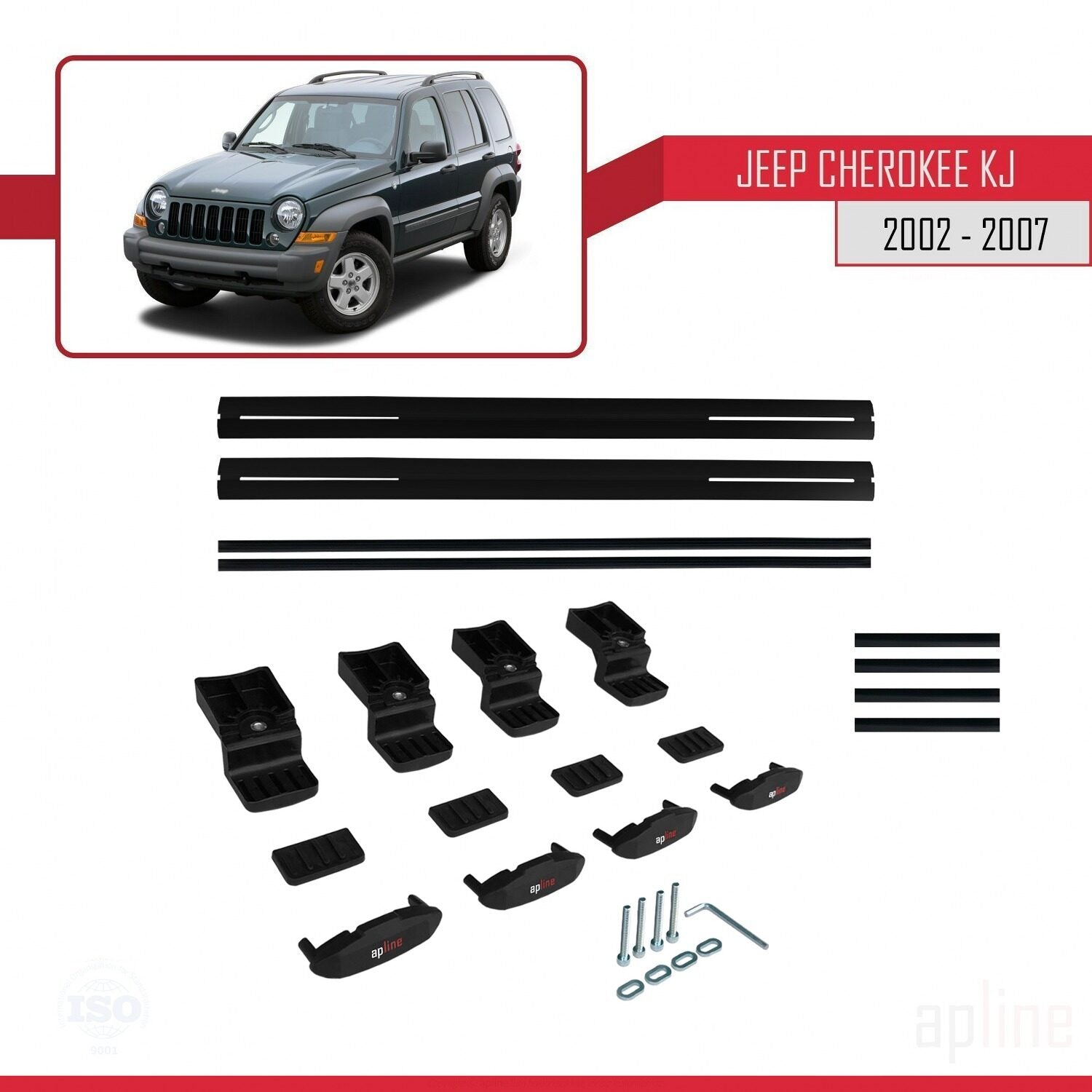 Compatible avec Jeep Cherokee 3 (KJ) 2002-2007 BASIC Model Barres de Toit Railing Porte-Bagages de Voiture Noir Aluminium 2 Barres