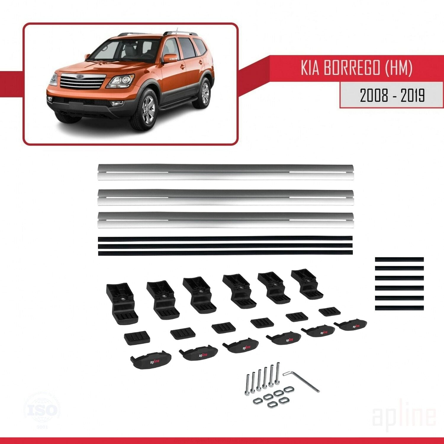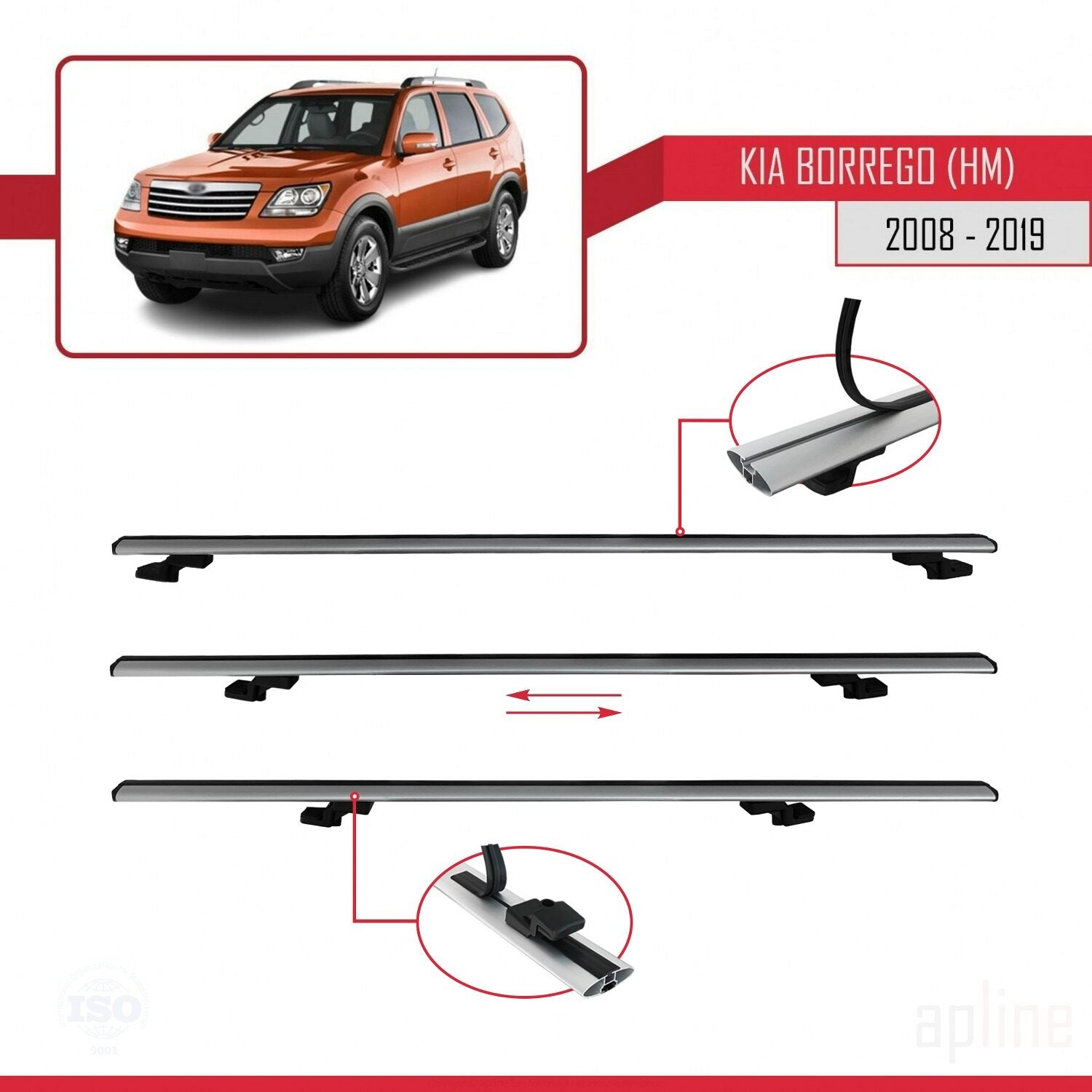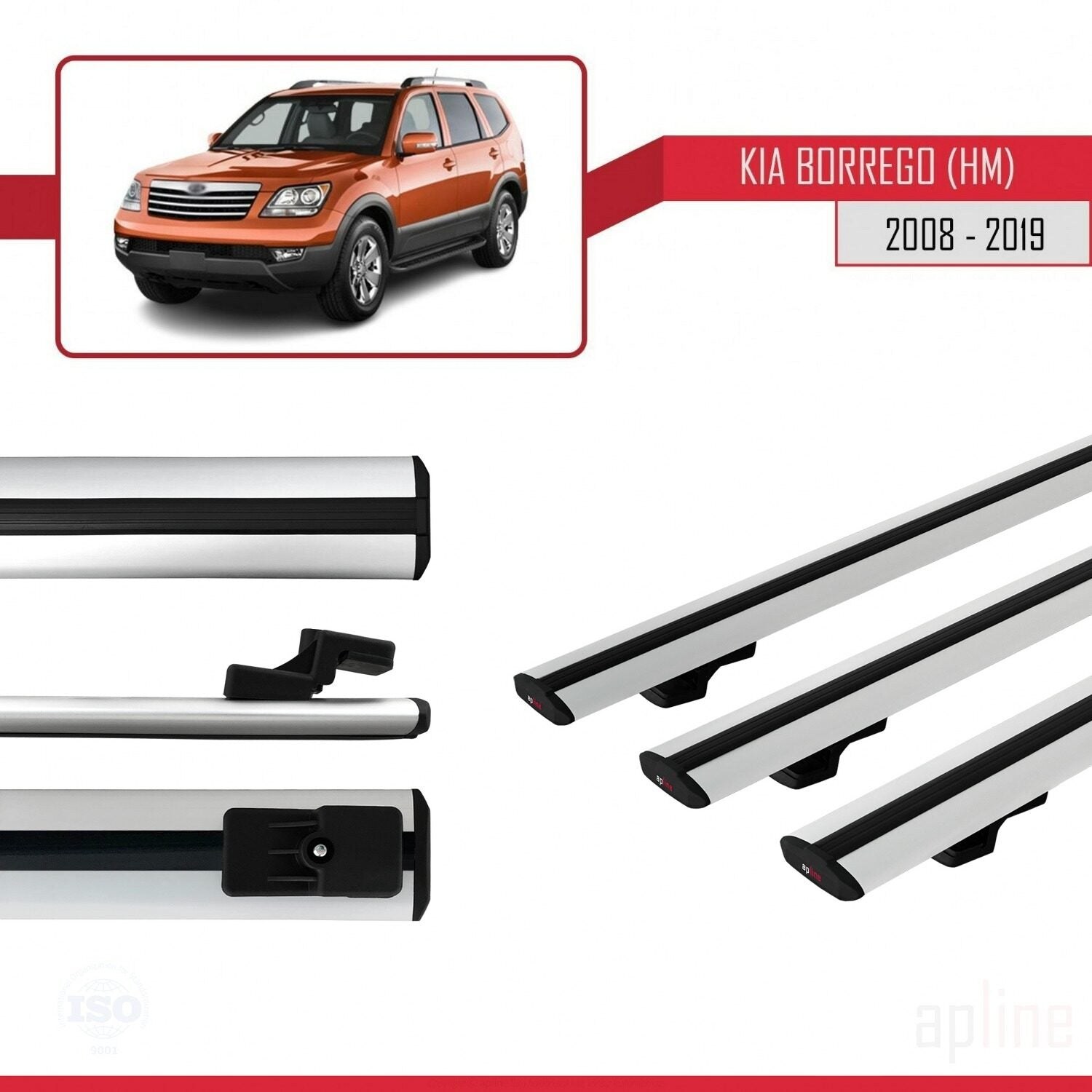 Compatible avec Kia Borrego (HM) 2008-2019 BASIC Model Barres de Toit Railing Porte-Bagages de Voiture Gris Aluminium 3 Barres