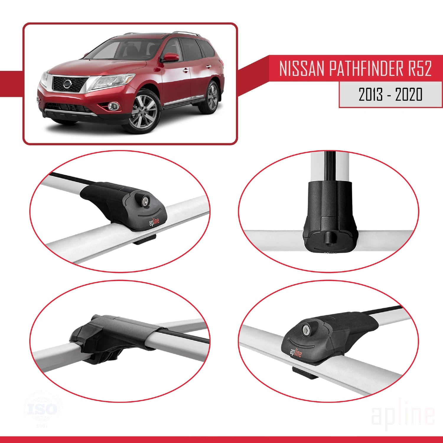 Compatible avec Nissan Pathfinder 4 (R52) 2013-2020 ACE-1 Barres de Toit Railing Porte-Bagages de Voiture Gris Aluminium 3 Barres