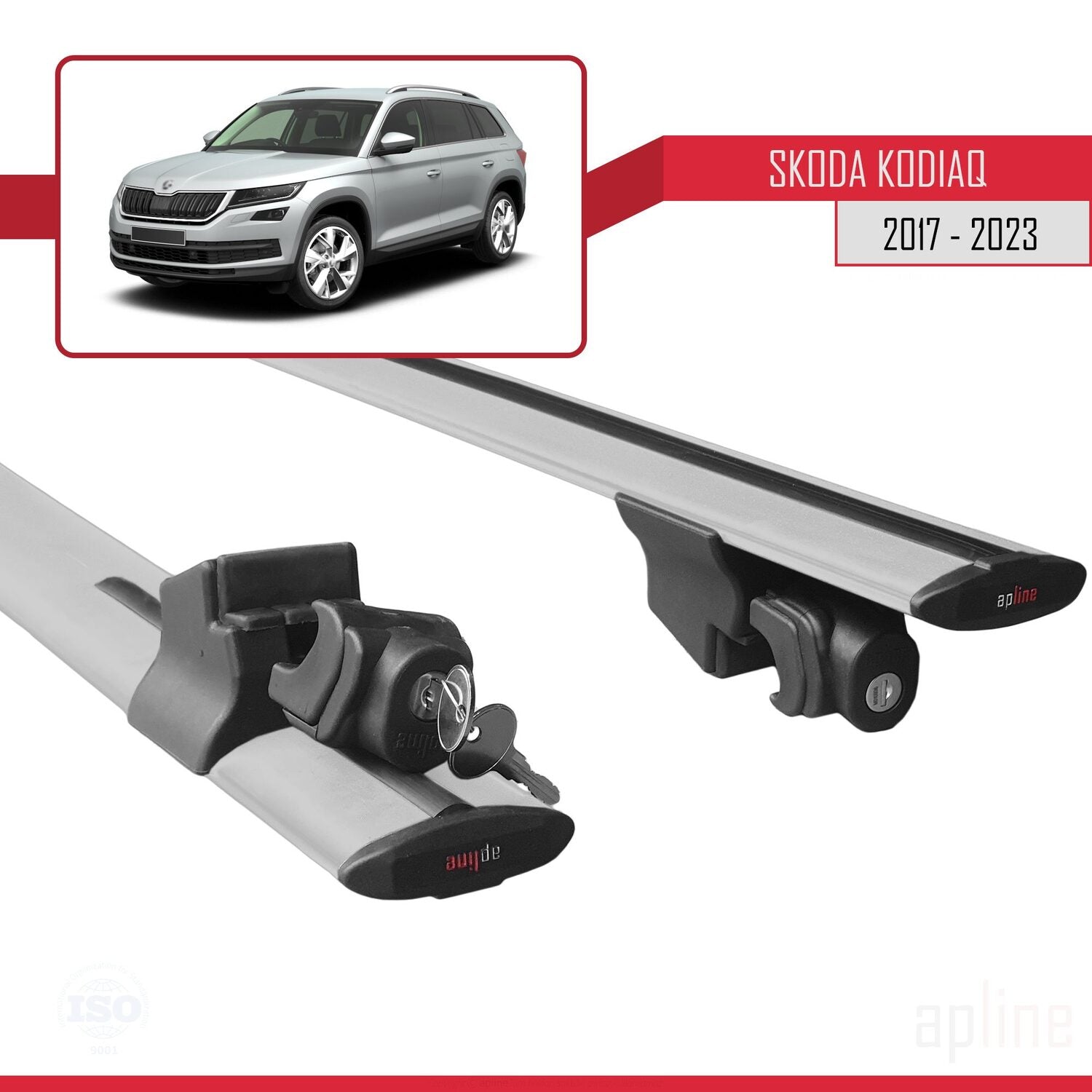 Compatible avec Skoda Kodiaq 2017-2023 HOOK Model Barres de Toit Railing Porte-Bagages de Voiture Gris Aluminium 2 Barres