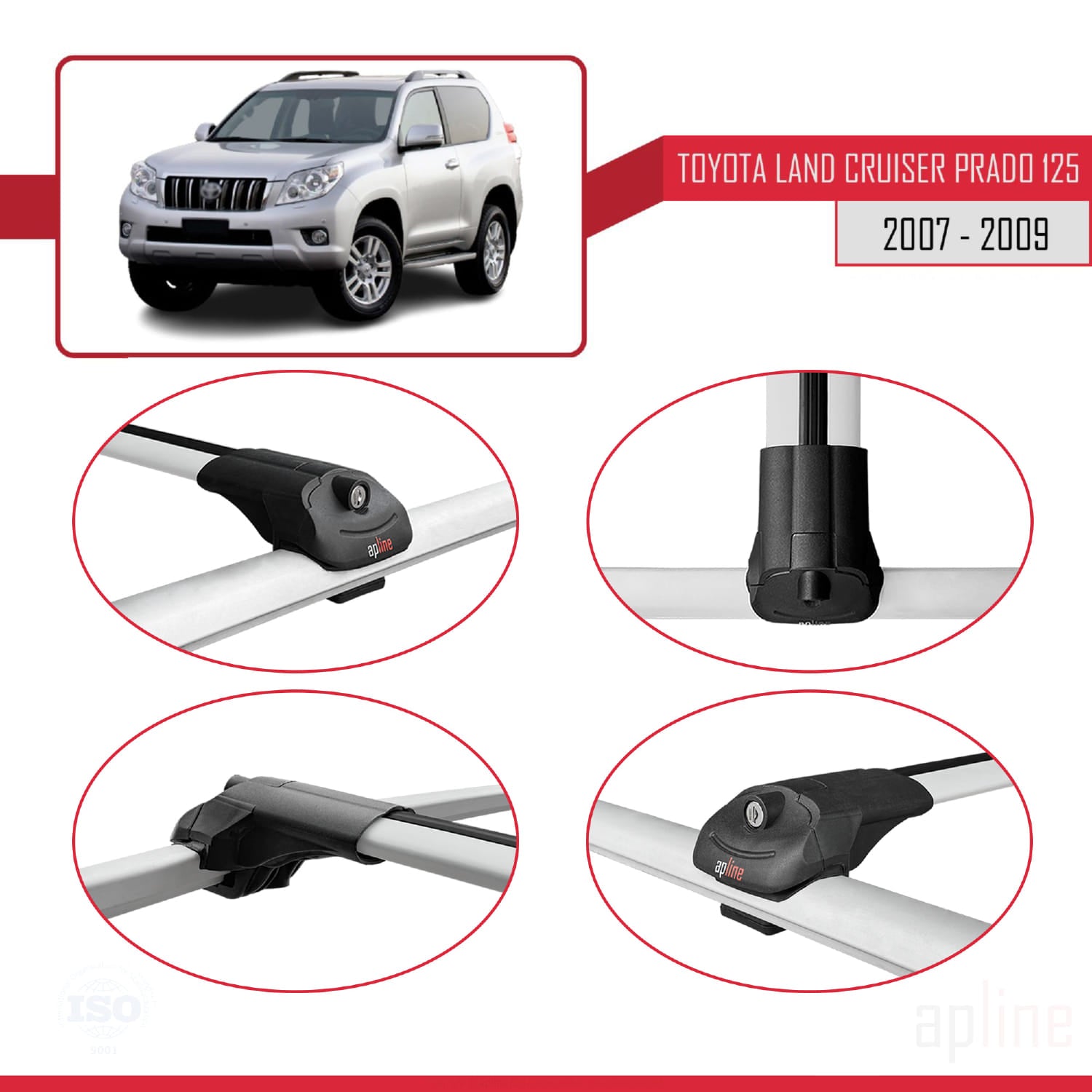 Compatible avec Toyota Land Cruiser Prado (J125) 2007-2009 ACE-1 Barres de Toit Railing Porte-Bagages de Voiture Gris Aluminium 2 Barres