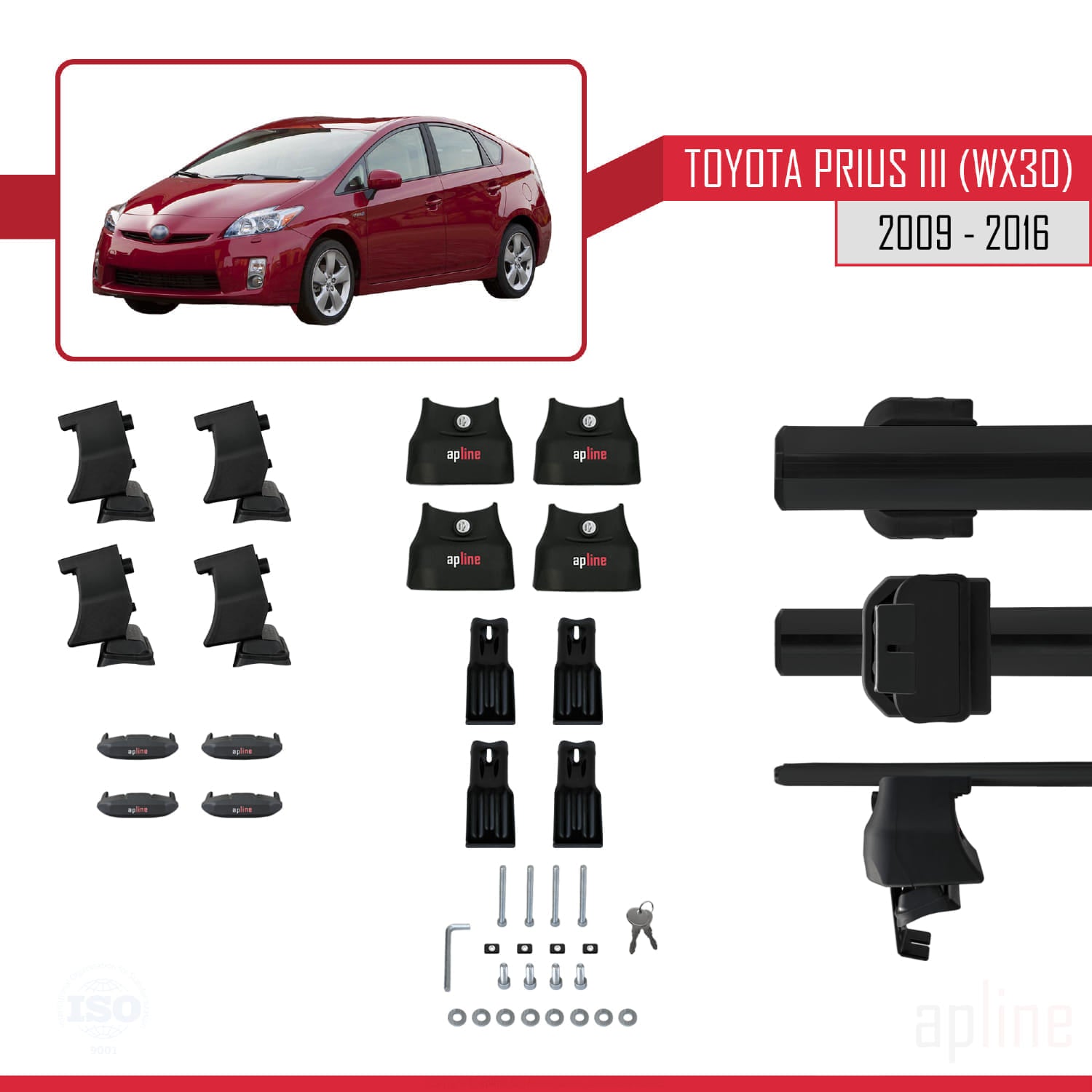 Compatible avec Toyota Prius 3 (XW30) 2009-2016 ACE-4 Barres de Toit Railing Porte-Bagages de Voiture Noir Aluminium 2 Barres