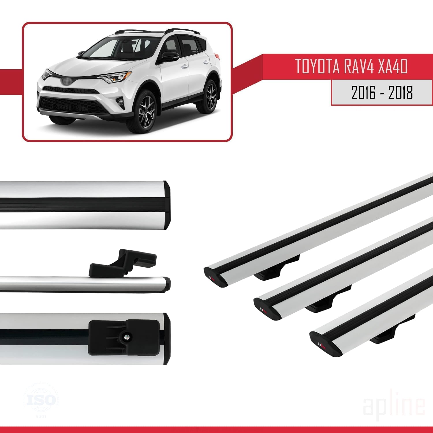 Compatible avec Toyota RAV4 IV (XA40) Post-Facelift 2016-2018 BASIC Model Barres de Toit Railing Porte-Bagages de Voiture Gris Aluminium 3 Barres
