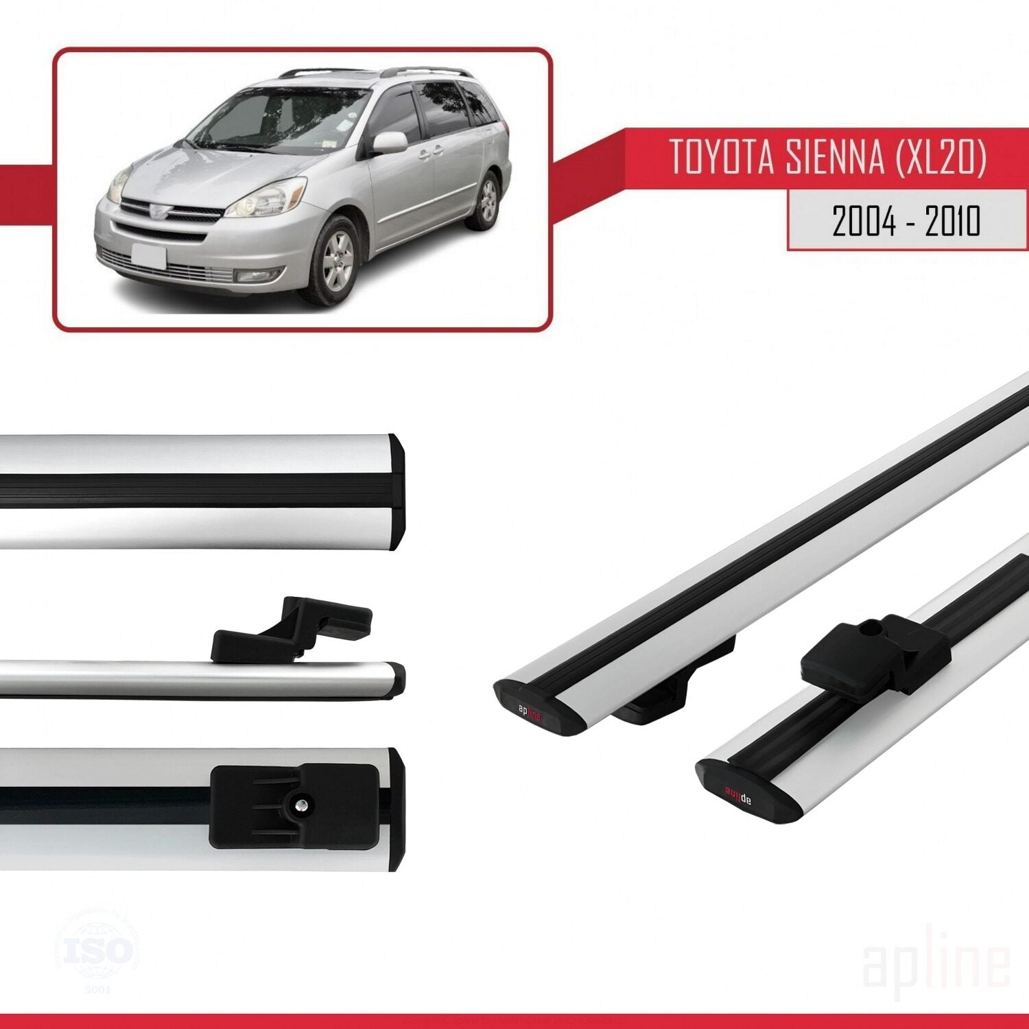 Compatible avec Toyota Sienna 2 (XL20) 2004-2010 BASIC Model Barres de Toit Railing Porte-Bagages de Voiture Gris Aluminium 2 Barres