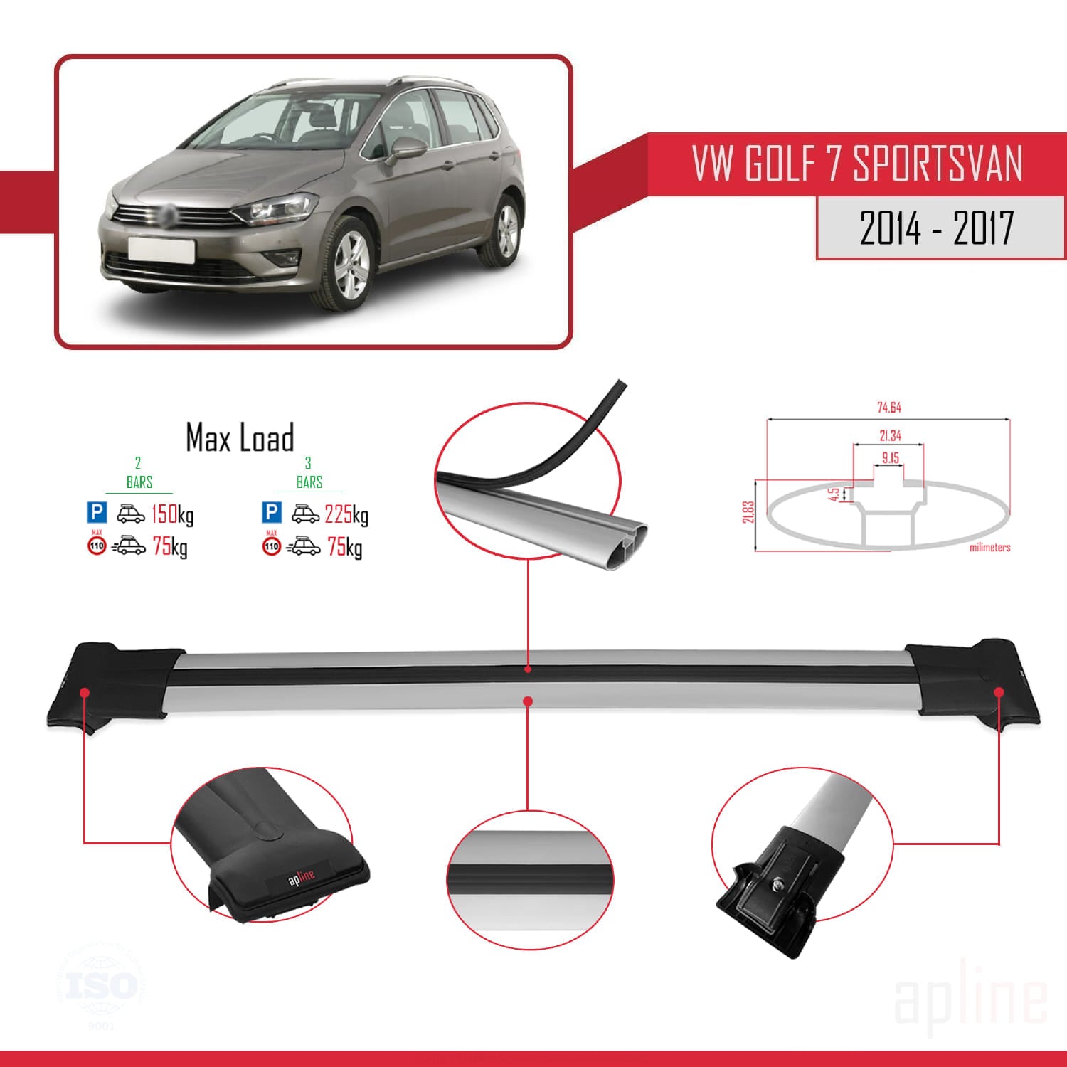 Compatible avec Volkswagen Golf Sportvan 2014-2017 FLY Model Barres de Toit Railing Porte-Bagages de Voiture Gris Aluminium 2 Barres