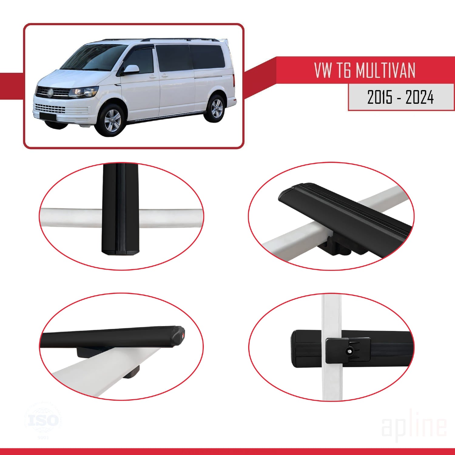 Compatible avec Volkswagen T6 Multivan 2015-2024 BASIC Model Barres de Toit Railing Porte-Bagages de Voiture Noir Aluminium 4 Barres