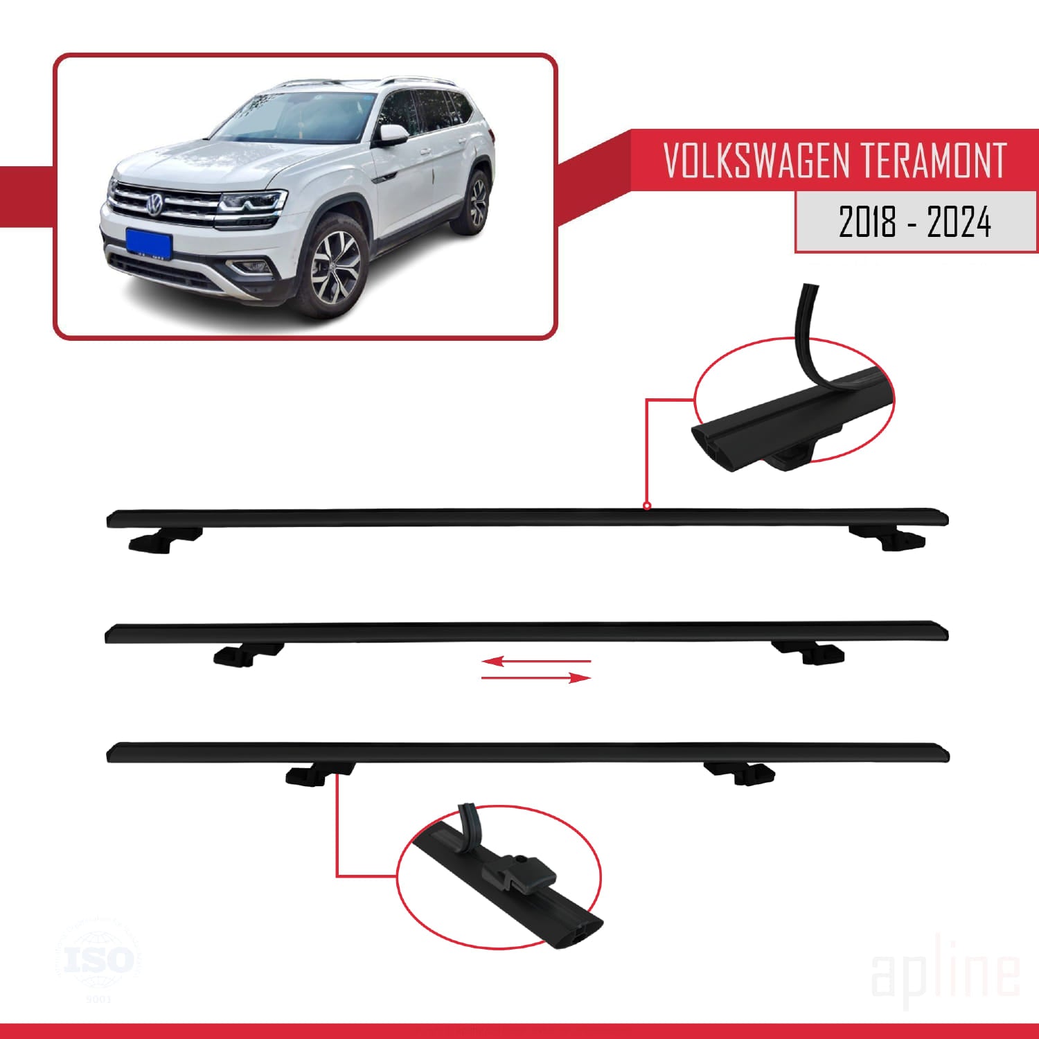 Compatible avec Volkswagen Teramont (CA1) 2018-2024 BASIC Model Barres de Toit Railing Porte-Bagages de Voiture Noir Aluminium 3 Barres