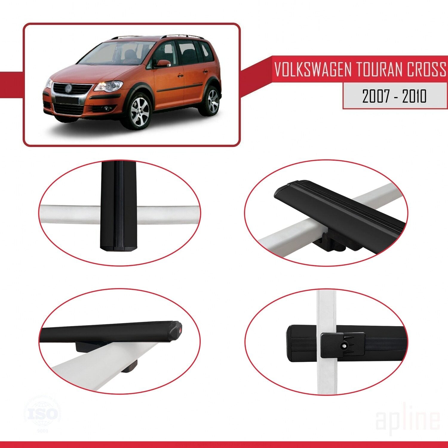 Compatible avec Volkswagen Touran Cross Pre-Facelift 2007-2010 BASIC Model Barres de Toit Railing Porte-Bagages de Voiture Noir Aluminium 3 Barres