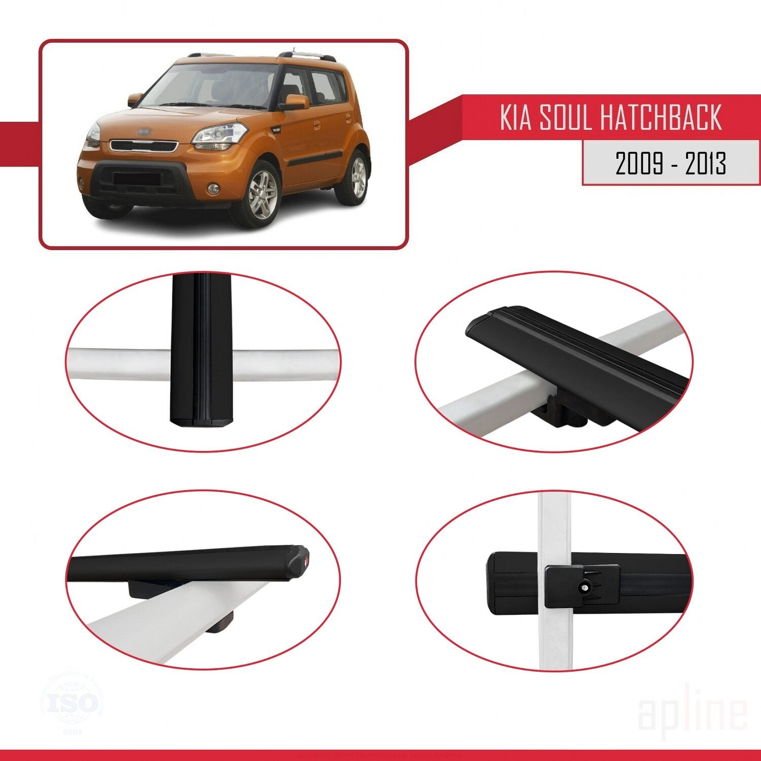 Compatible avec Kia Soul (AM) HB 2009-2013 BASIC Model Barres de Toit Railing Porte-Bagages de Voiture Noir Aluminium 3 Barres