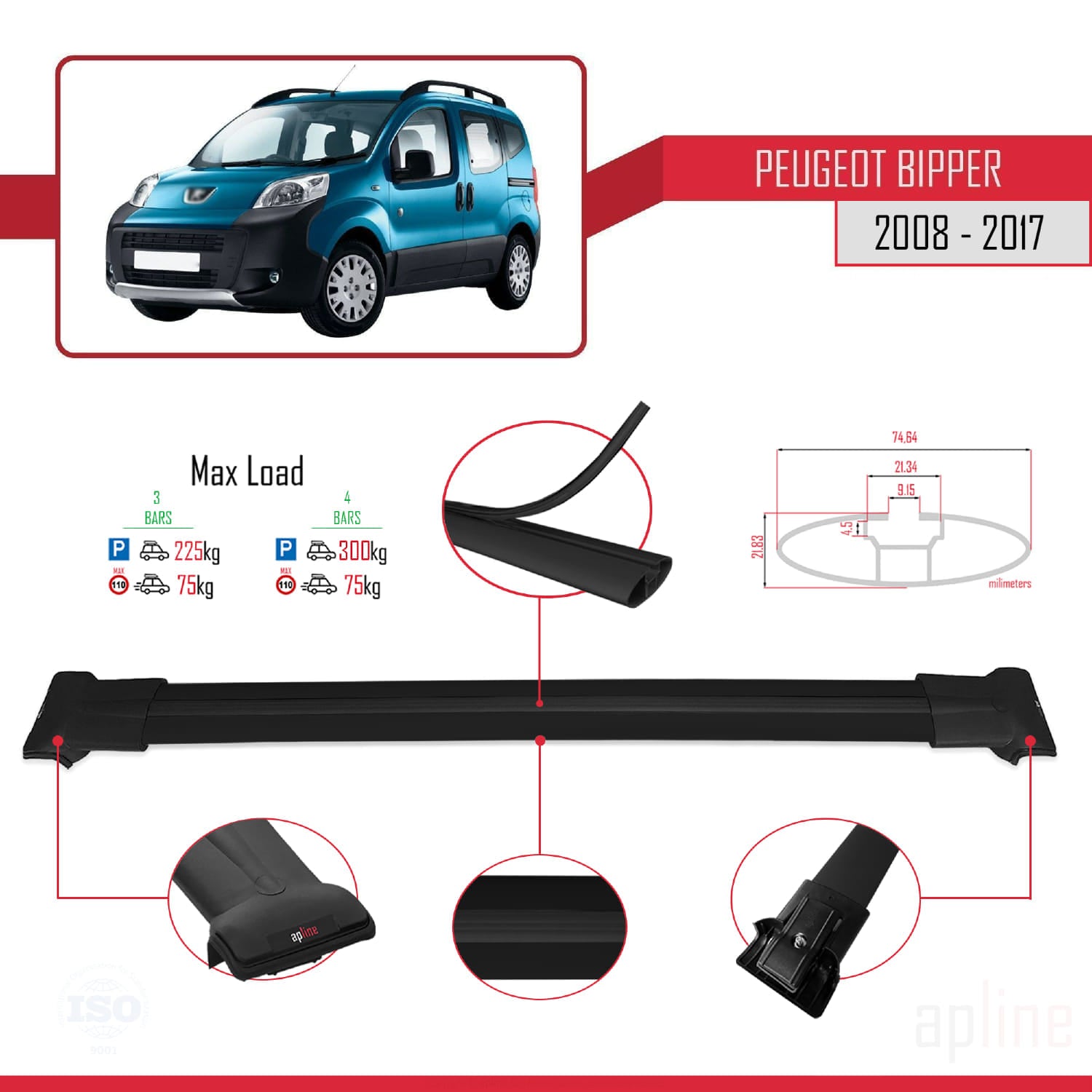 Compatible avec Peugeot Bipper 2008-2017 FLY Model Barres de Toit Railing Porte-Bagages de Voiture Noir Aluminium 4 Barres