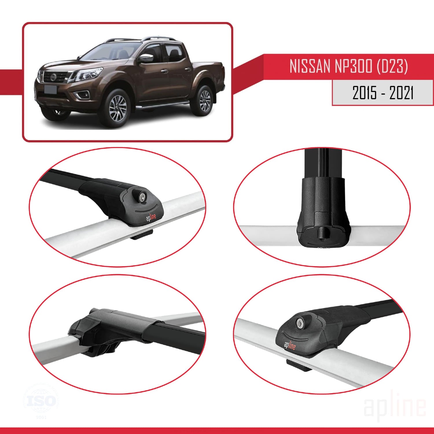 Compatible avec Nissan NP300 (D23) 2015-2021 ACE-1 Barres de Toit Railing Porte-Bagages de Voiture Noir Aluminium 3 Barres