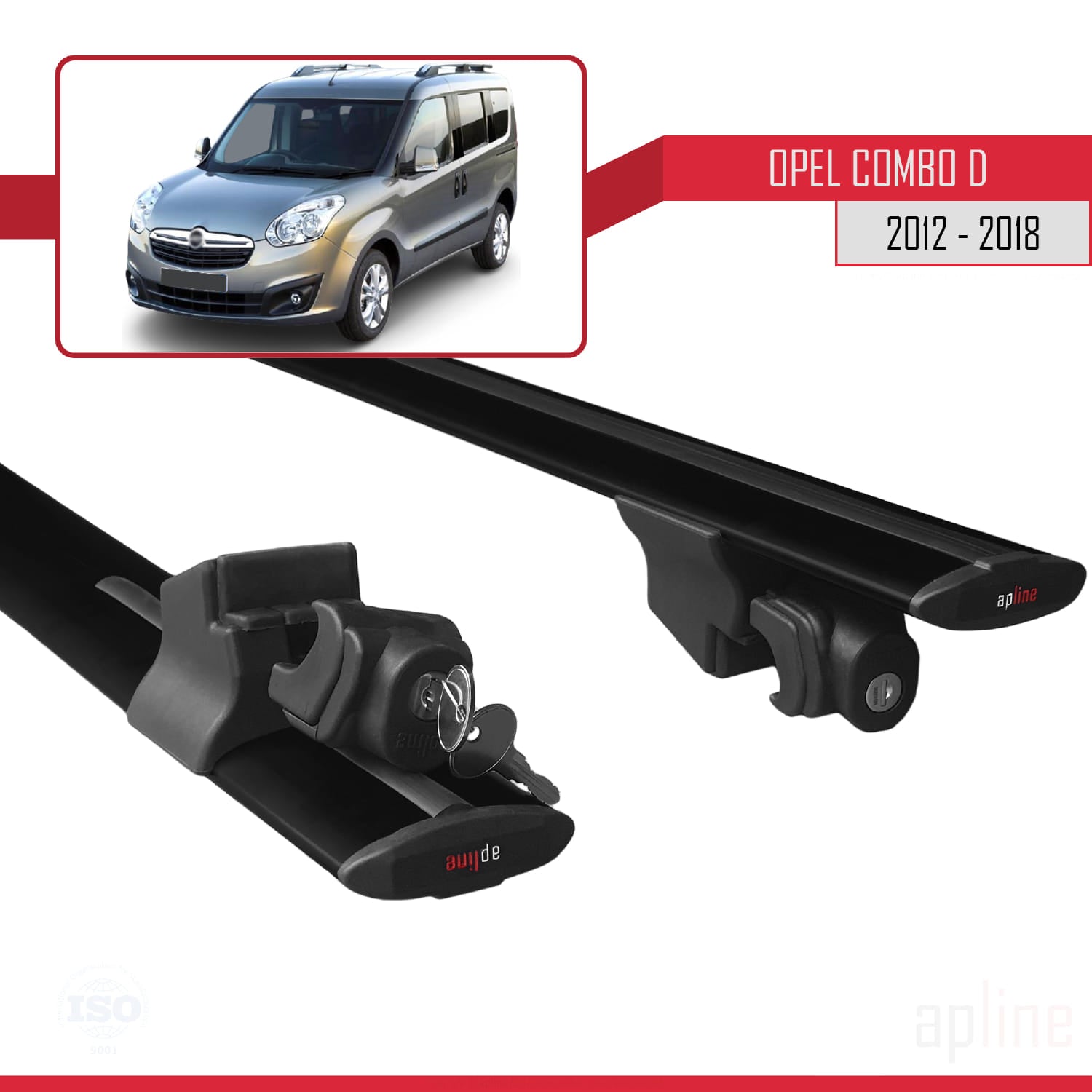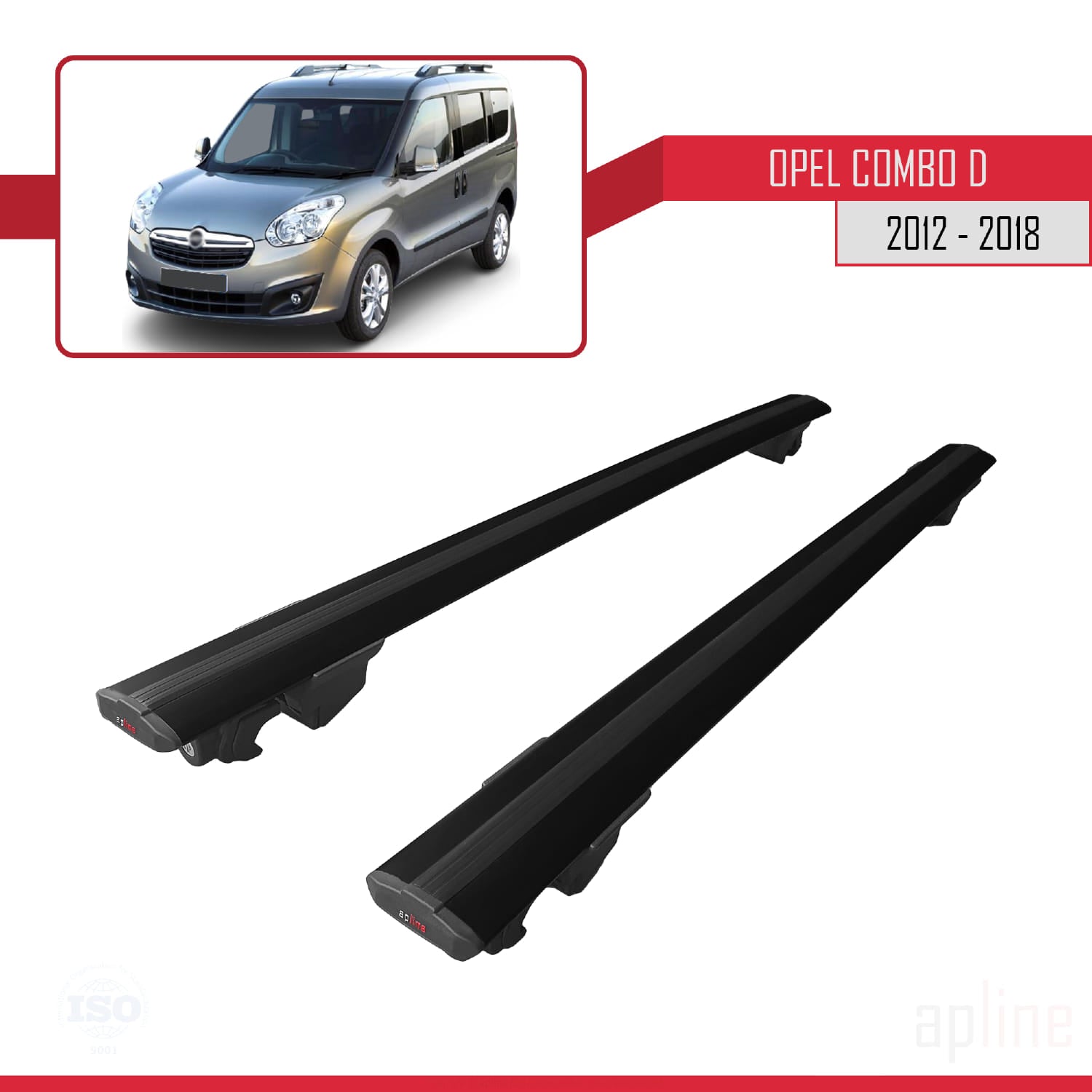 Compatible avec Opel Combo D 2012-2018 HOOK Model Barres de Toit Railing Porte-Bagages de Voiture Noir Aluminium 2 Barres