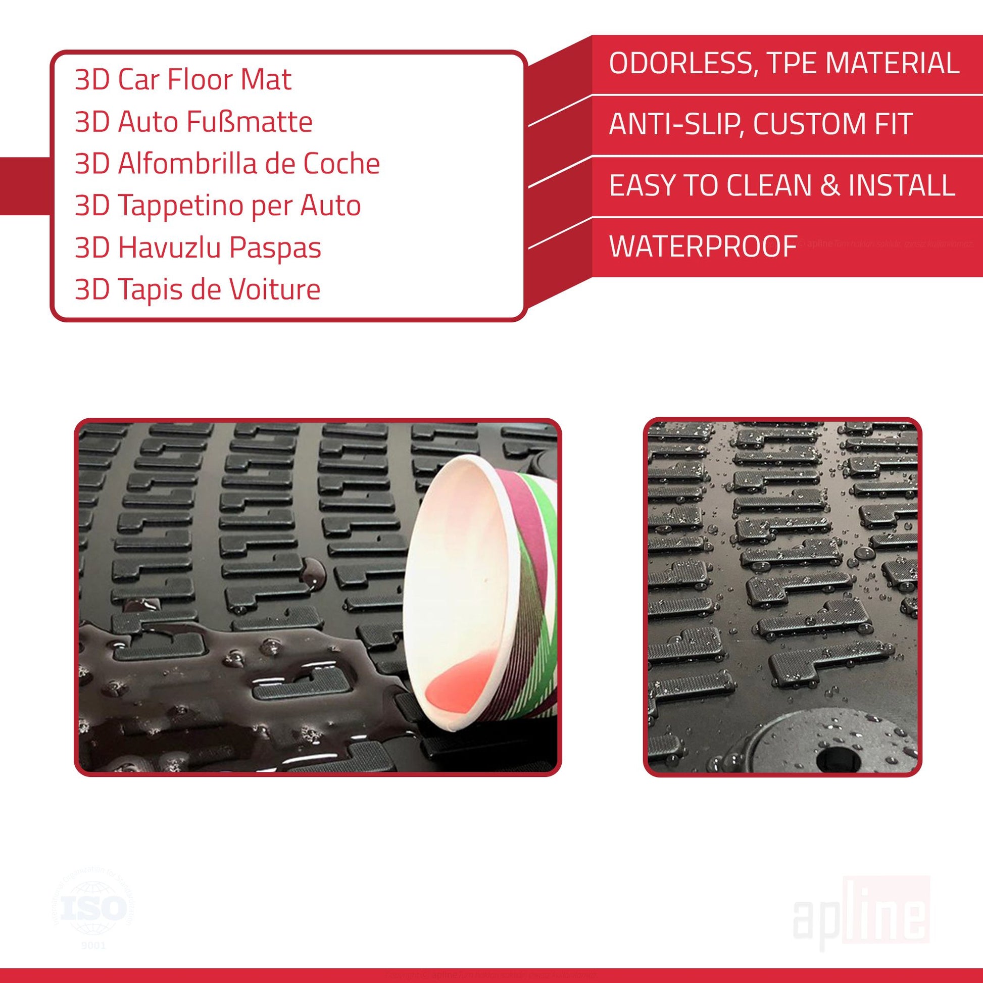 Les tapis de voiture 4D contribuent à préserver la valeur de votre véhicule en protégeant le plancher intérieur de la saleté, de l'eau, de la boue et d'autres facteurs externes. Spécialement conçus pour le modèle de véhicule spécifié, ces tapis s'adaptent parfaitement et offrent un aspect esthétique. Ils s'adaptent facilement au plancher de votre véhicule sans qu'il soit nécessaire de les découper. La hauteur des bords des tapis varie entre 2 et 4 cm et cette hauteur permet de garder votre véhicule propre en retenant les liquides et la saleté à l'intérieur. Il offre une expérience de conduite plus saine en empêchant l'accumulation de poussière, de pollen, de poils d'animaux et d'autres allergènes. Le produit est imperméable, lavable et sèche rapidement. Il est inodore et crée un environnement propre à l'intérieur de votre véhicule. Les tapis de voiture, qui ne perdent pas leur forme et ont une surface antidérapante, tiennent fermement au plancher du véhicule, restent fixés et ne glissent pas grâce à des fentes de fixation spéciales sur certains modèles. Fabriqués à partir de matériaux de qualité, ils résistent à des températures comprises entre -50°C et +80°C. Il garantit la sécurité de la conduite grâce à la languette du repose-pieds gauche et à la forme de la pédale inférieure spécialement adaptée à votre véhicule.